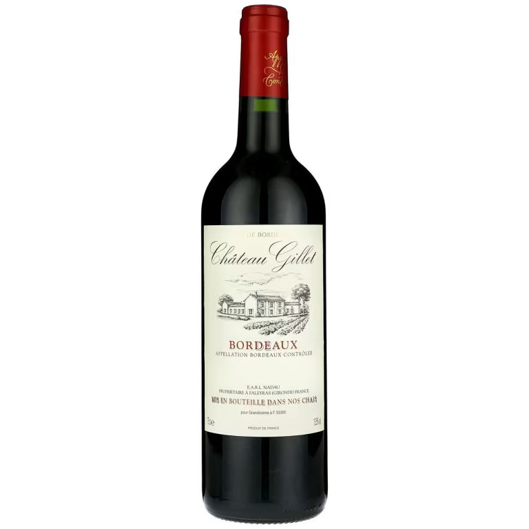 Discover Château Gillet Bordeaux, an elegant claret that boasts a combination of vibrant fruitiness and refined savoury notes. This Bordeaux wine, with its intense aroma and dark ruby hue, showcases fruity aromas of cherry, blackberry, and blackcurrant for a palate that is supple and well-rounded. Its velvety tannins and long, fruit-filled finish make it a great companion for meals, especially those with red meats, cured meats and tomato-based pasta dishes.