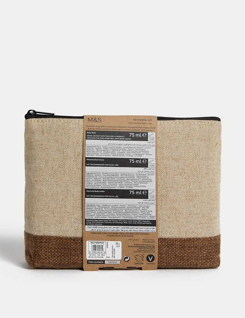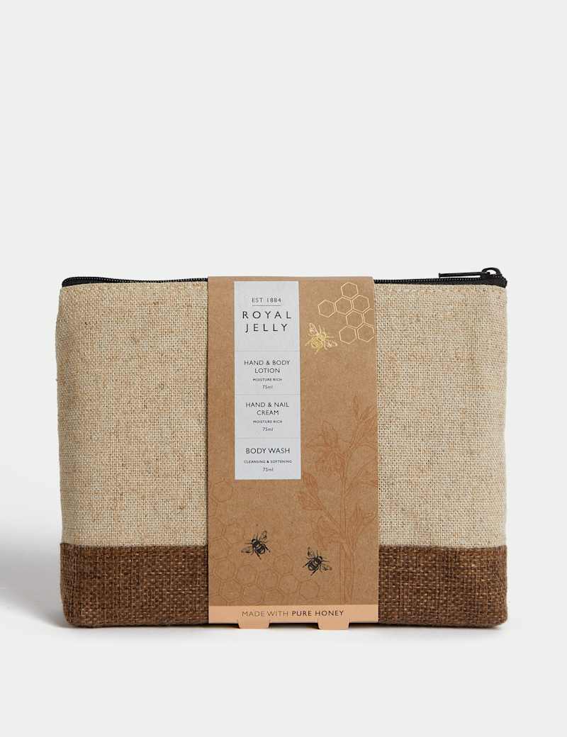 Make them feel special with this luxurious gift set. It includes a stylish cosmetic bag housing a trio of pampering essentials, each infused with royal jelly extract to deeply nourish the skin. Cleanse and refresh with the gentle body wash, hydrate and soften hands with the hand and nail cream and finish with the moisturising hand and body lotion.