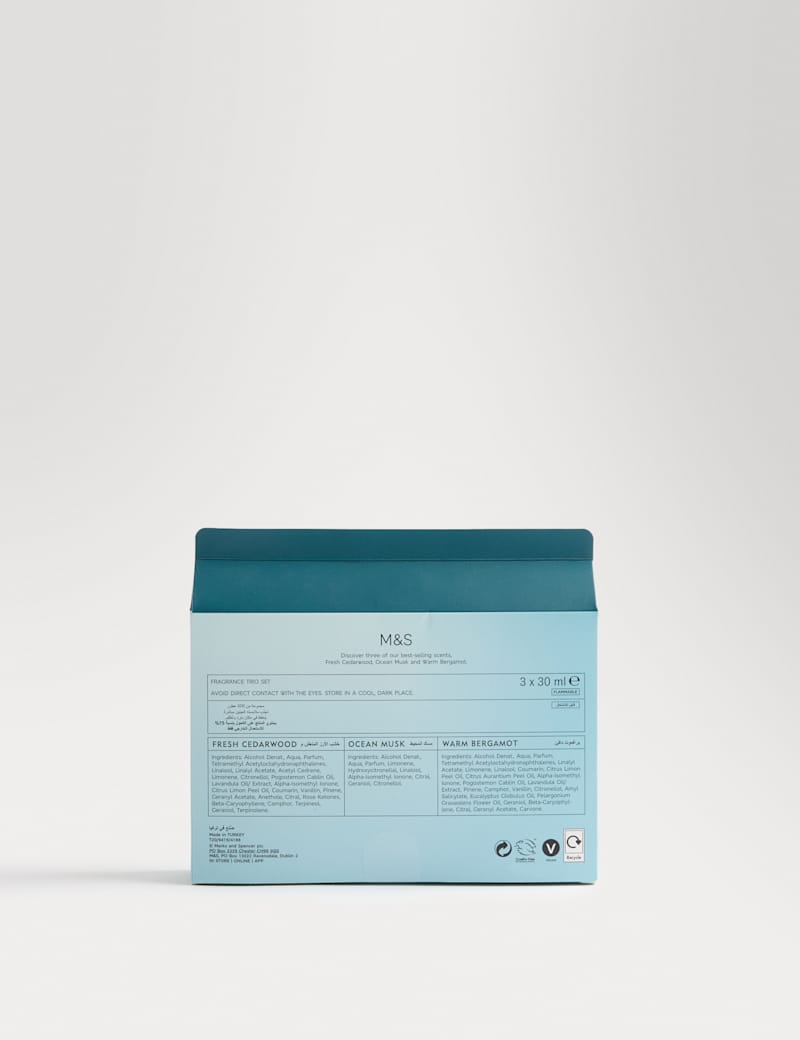 This trio of best-selling Discover fragrances offer fresh, signature scents. Each of the eau de toilettes comes in a 30ml bottle and are grouped to complement each other. The set includes Fresh Cedarwood with oceanic notes and deep tones of amber. Ocean Musk balances uplifting scents with the dry down of musk. Finally, Warm Bergamot blends zesty notes with amber and musk.