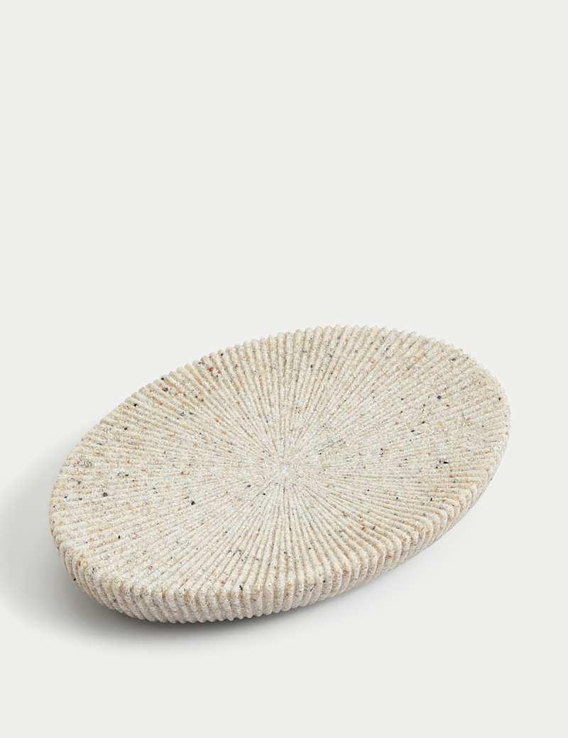 Bring a touch of natural beauty to your bathroom with this stylish soap dish. It mimics the look of real stone and features a ridged texture that helps to hold the soap in place.