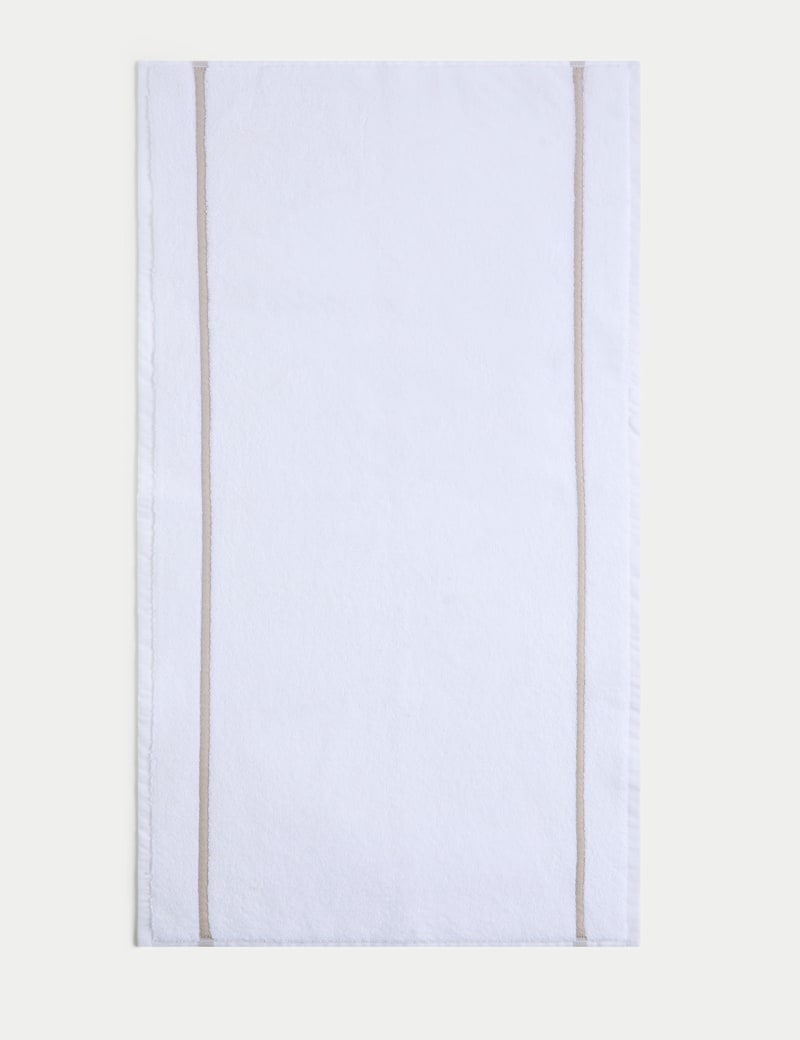 This bath towel from our M&S X Kelly Hoppen collaboration will have you wrapped in luxury. Crafted from a weighty 600 gsm pure Turkish cotton, it offers exceptional absorbency and softness against the skin. Contrasting border lines in muted, tonal yarns lines create an elegant look. Thanks to our StayNewtechnology, your towel will maintain its plushness and colour wash after wash.