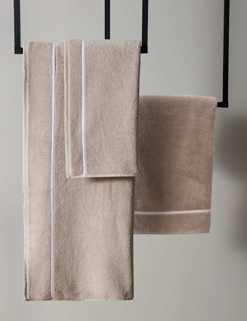 This bath towel from our M&S X Kelly Hoppen collaboration will have you wrapped in luxury. Crafted from a weighty 600 gsm pure Turkish cotton, it offers exceptional absorbency and softness against the skin. Contrasting border lines in muted, tonal yarns lines create an elegant look. Thanks to our StayNew™ technology, your towel will maintain its plushness and colour wash after wash.