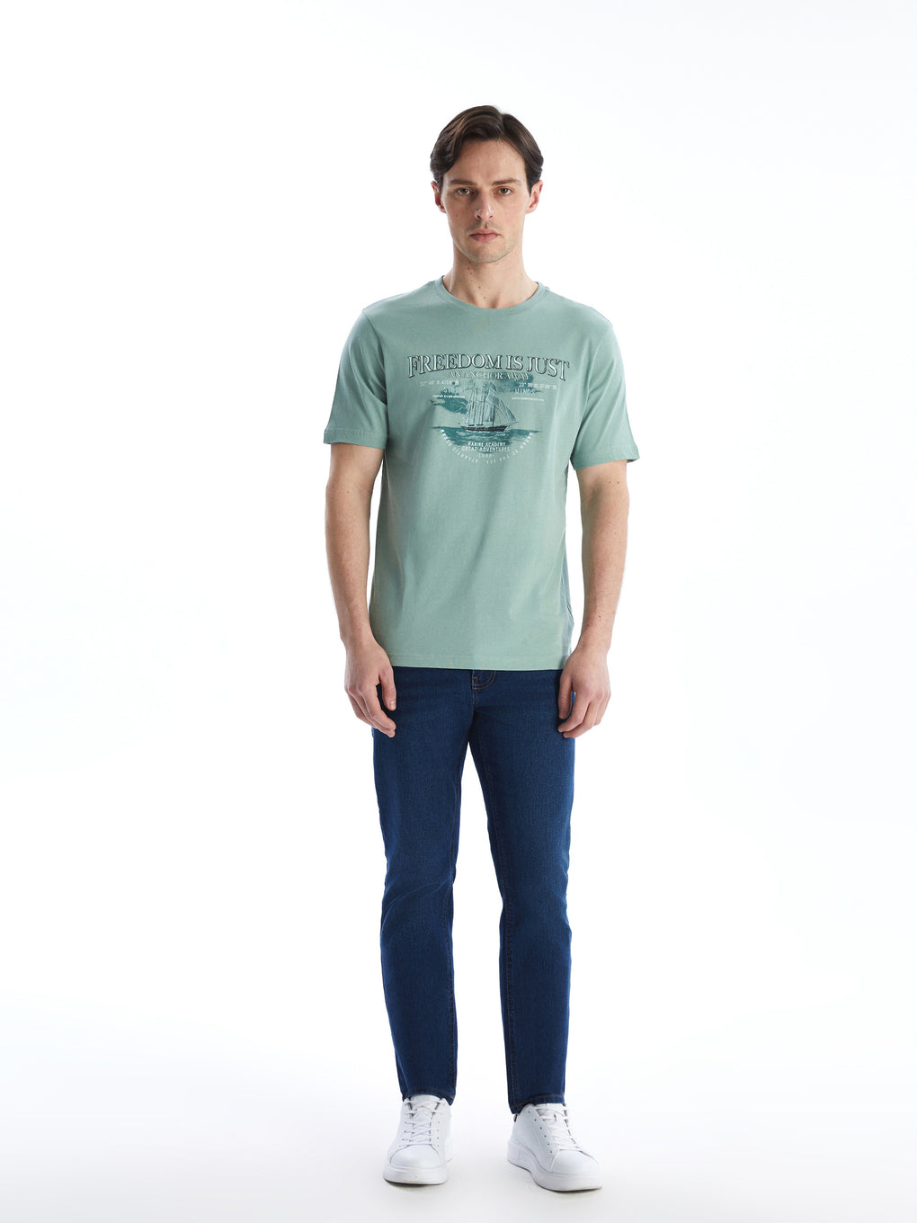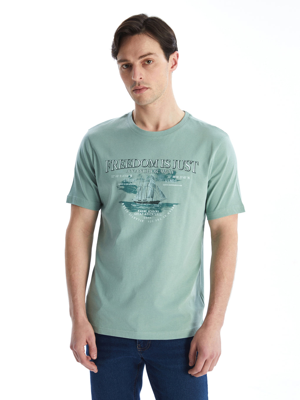 Crew Neck Short Sleeve Printed Combed Cotton Men's T-shirt