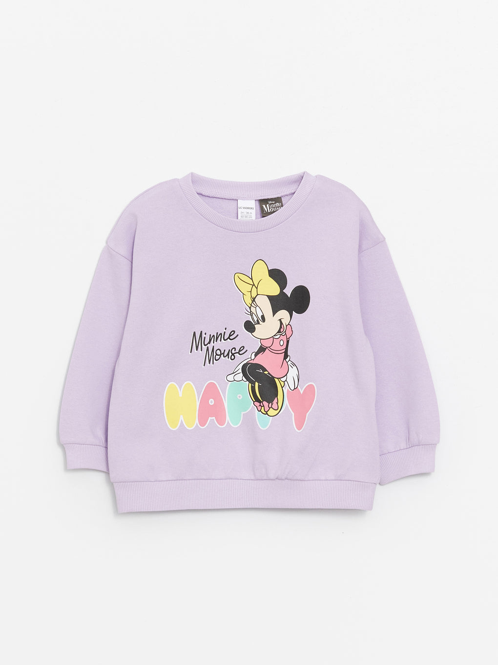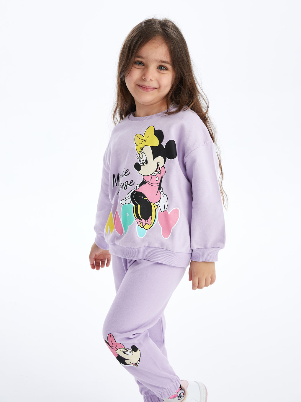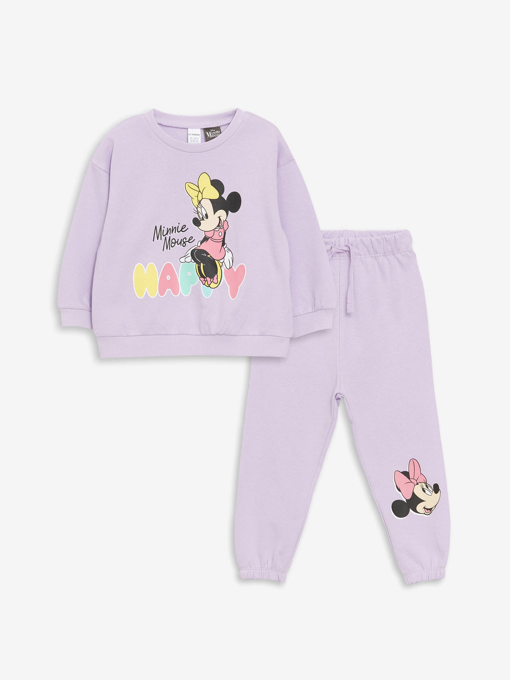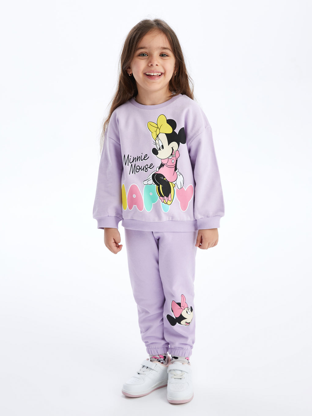 Crew Neck Long Sleeved Minnie Mouse Printed Baby Girl Sweatshirt and Tracksuit Bottom 2-Pack Set