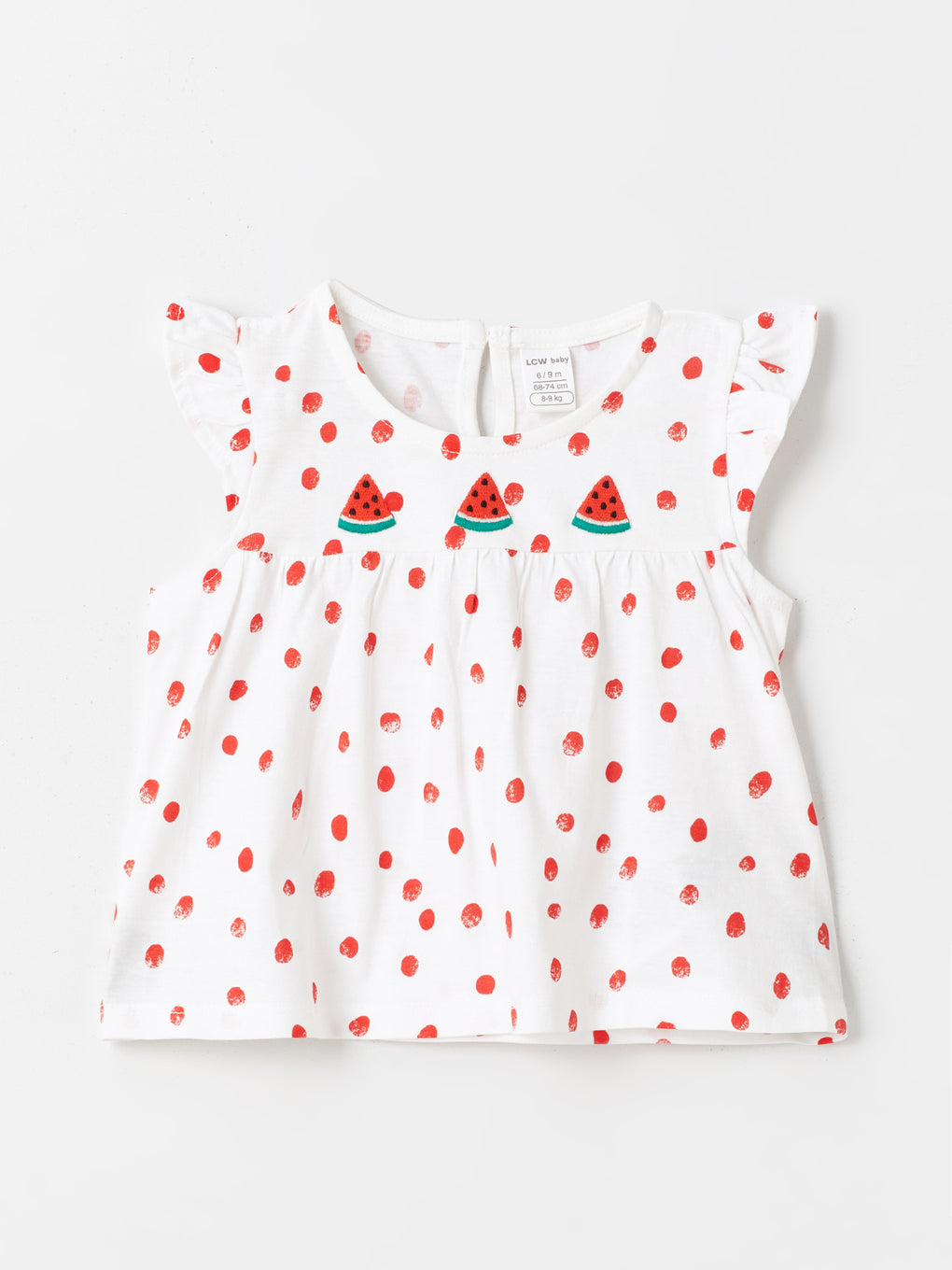 Crew Neck Sleeveless Printed Baby Girl Blouse and Tights 2-Piece Set