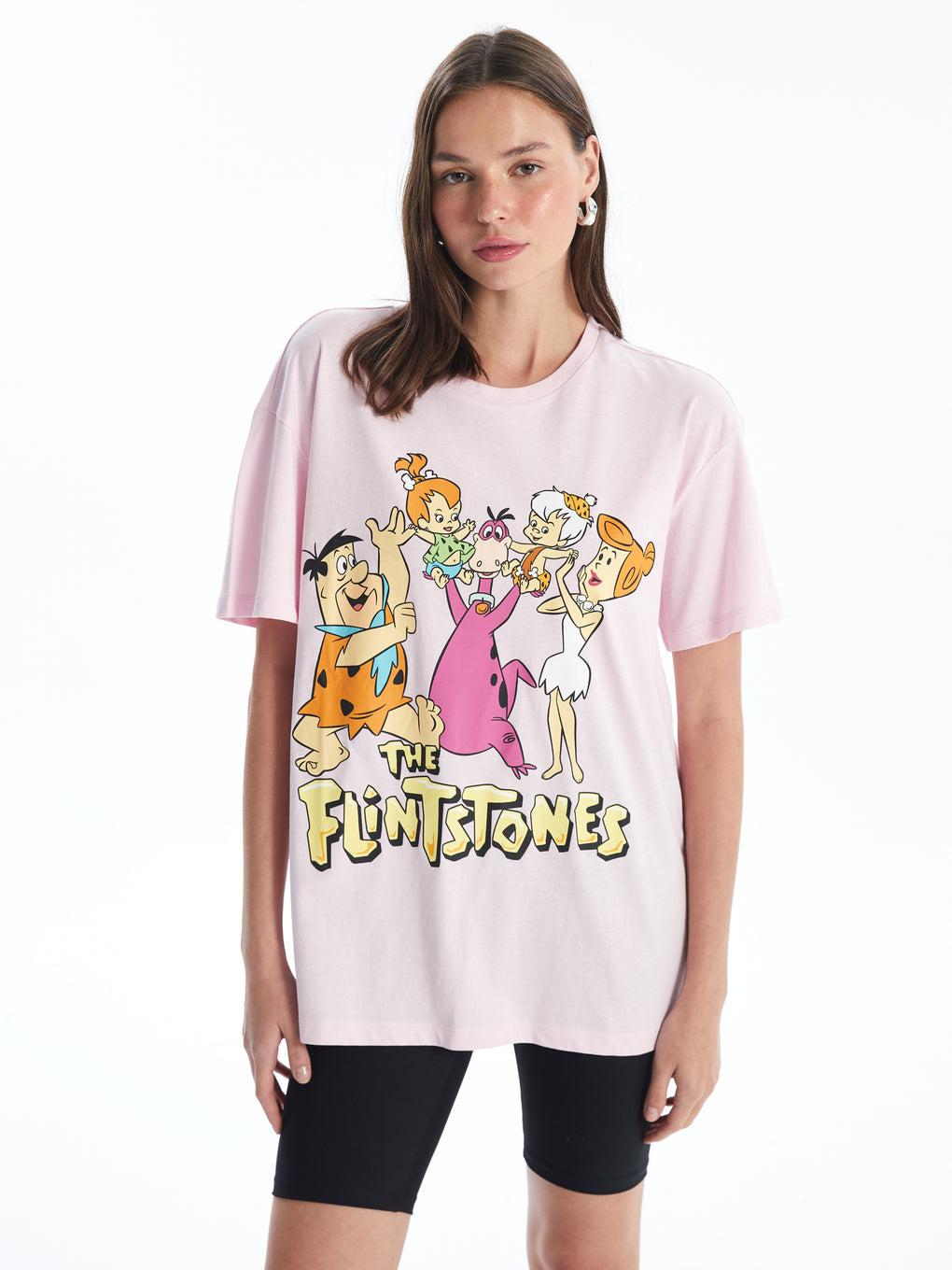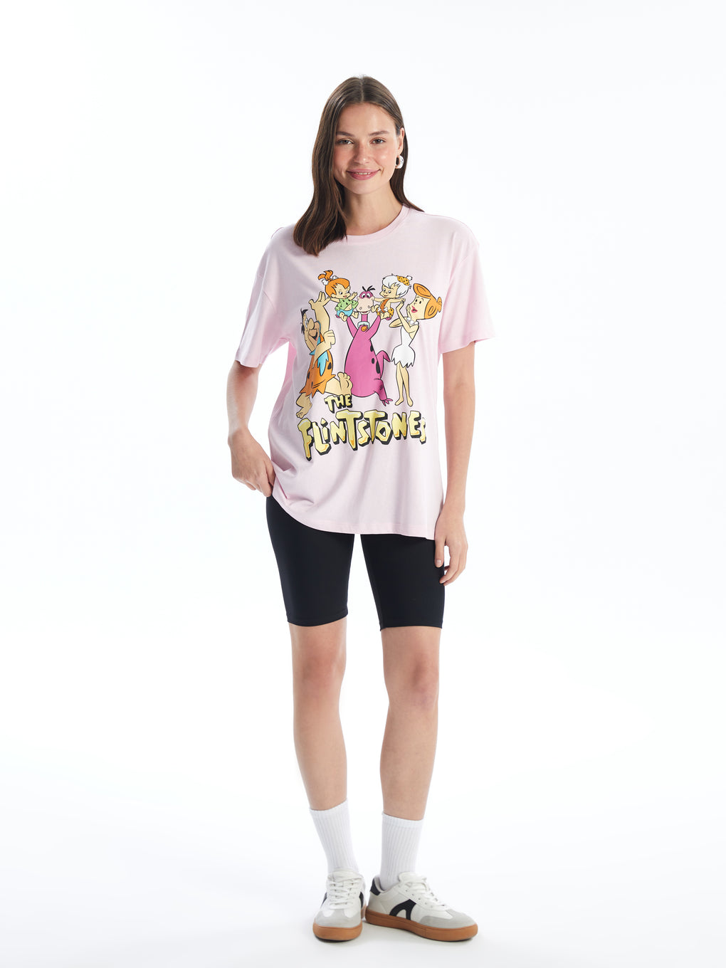 Crew Neck Stone Age Printed Short Sleeve Women's T-Shirt