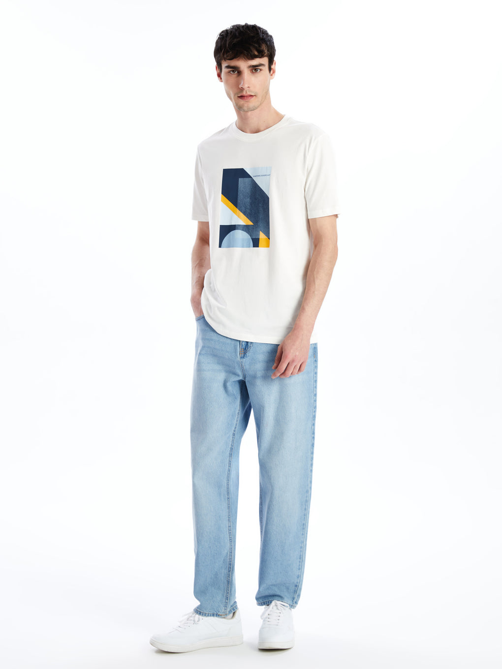 Crew Neck Short Sleeve Printed Combed Cotton Men's T-shirt
