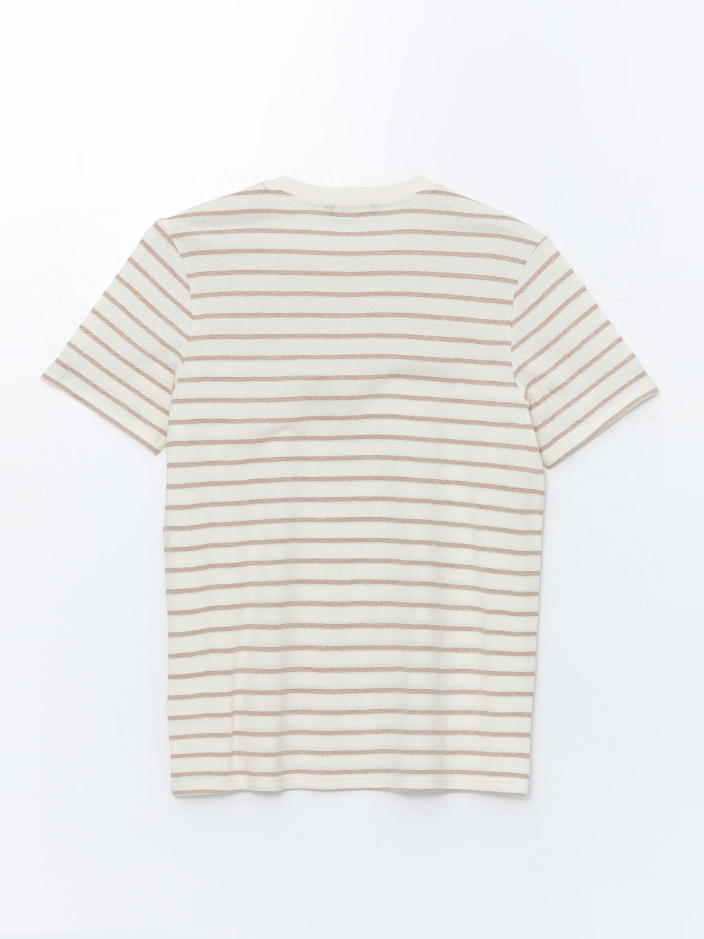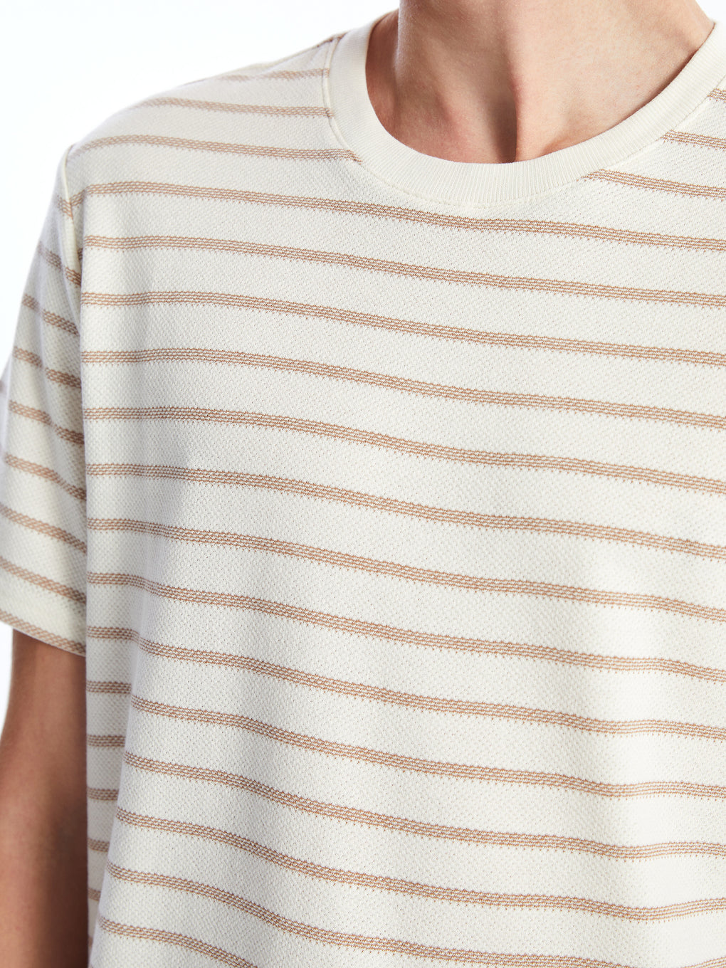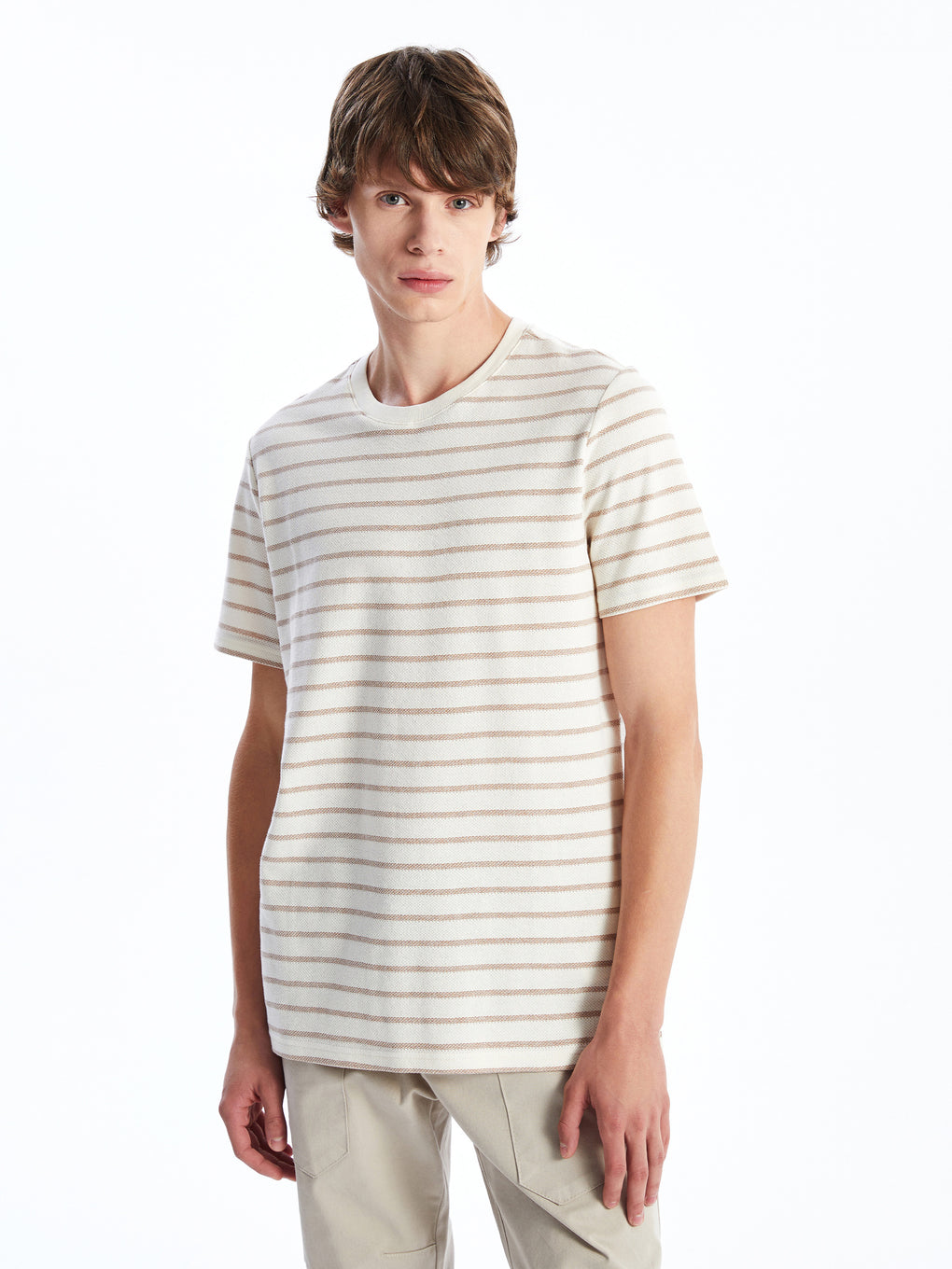 Crew Neck Short Sleeve Striped Combed Cotton Men's T-shirt