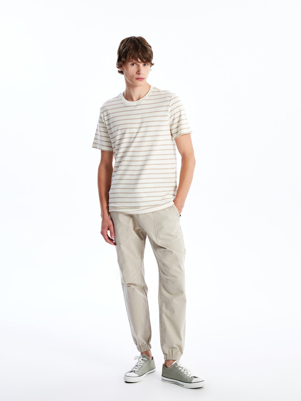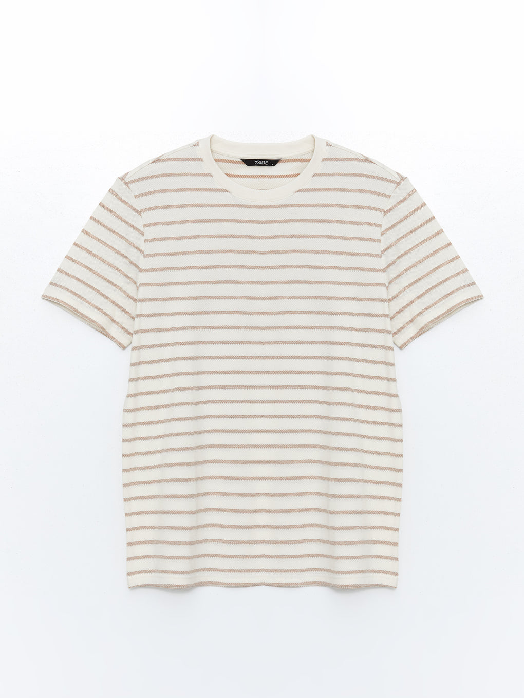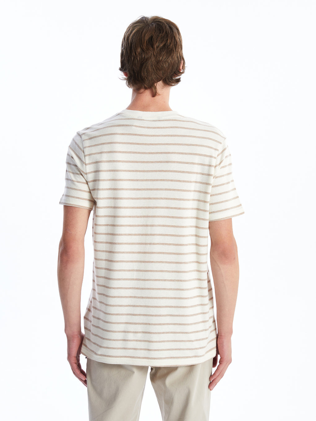 Crew Neck Short Sleeve Striped Combed Cotton Men's T-shirt