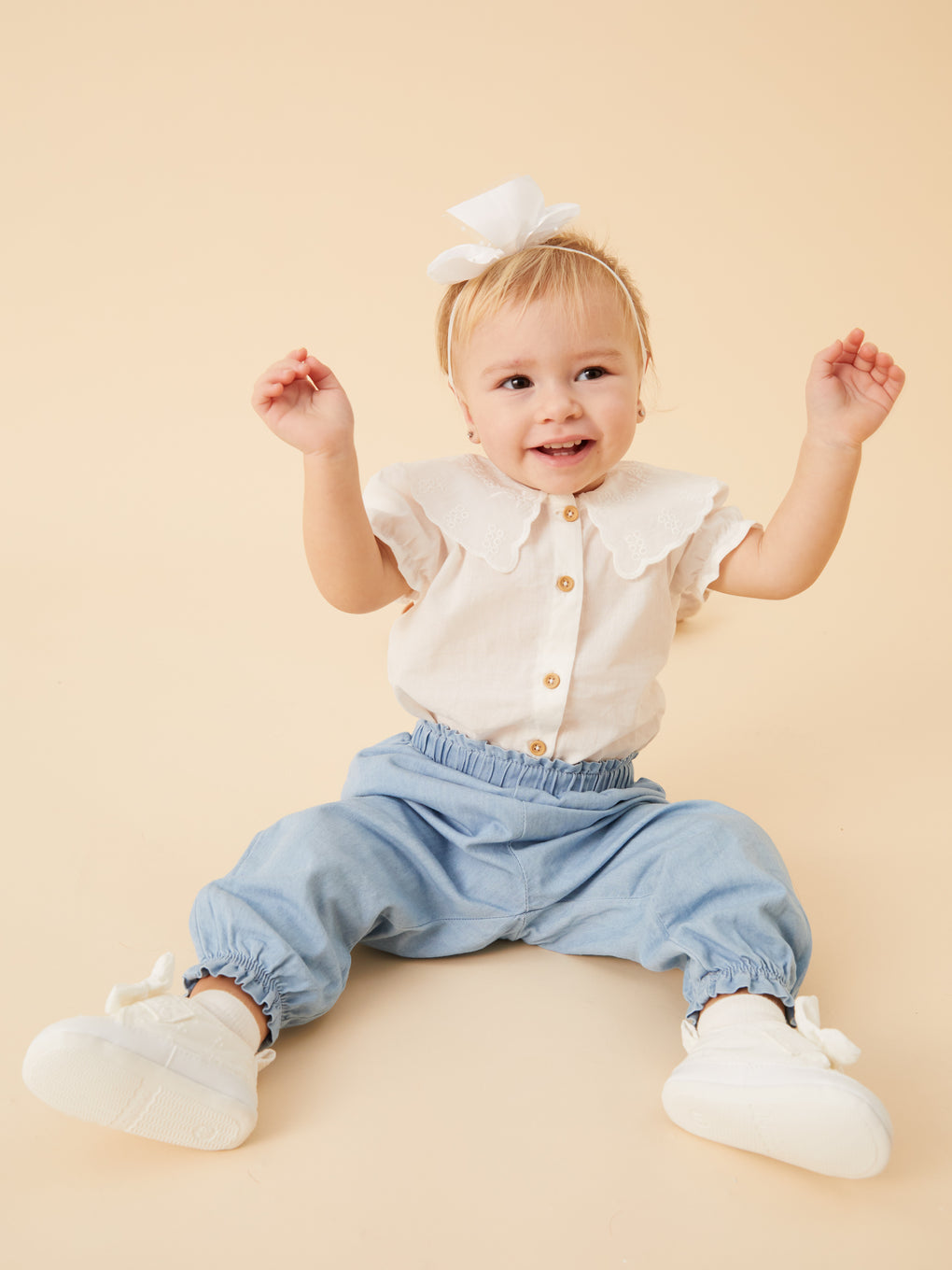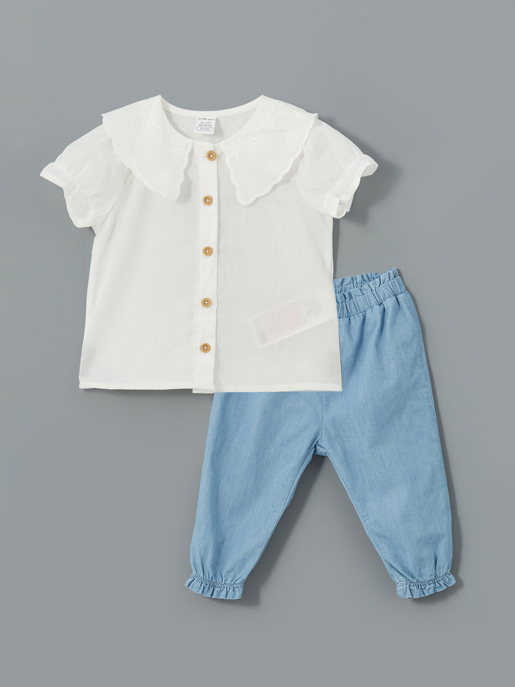 Crew Neck Girl’S Baby Basic Blouse And Pants Set (2 Pcs)