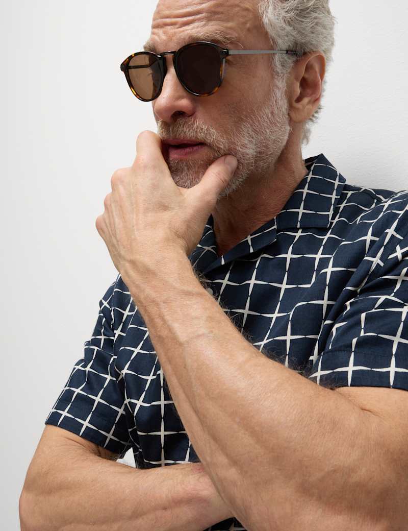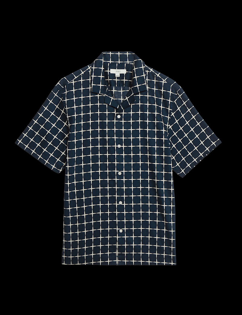 With its bold geometric print, this shirt will make a statement on casual days. Comfy regular fit. Cuban collar for a laid-back look. Made from soft and breathable pure cotton.