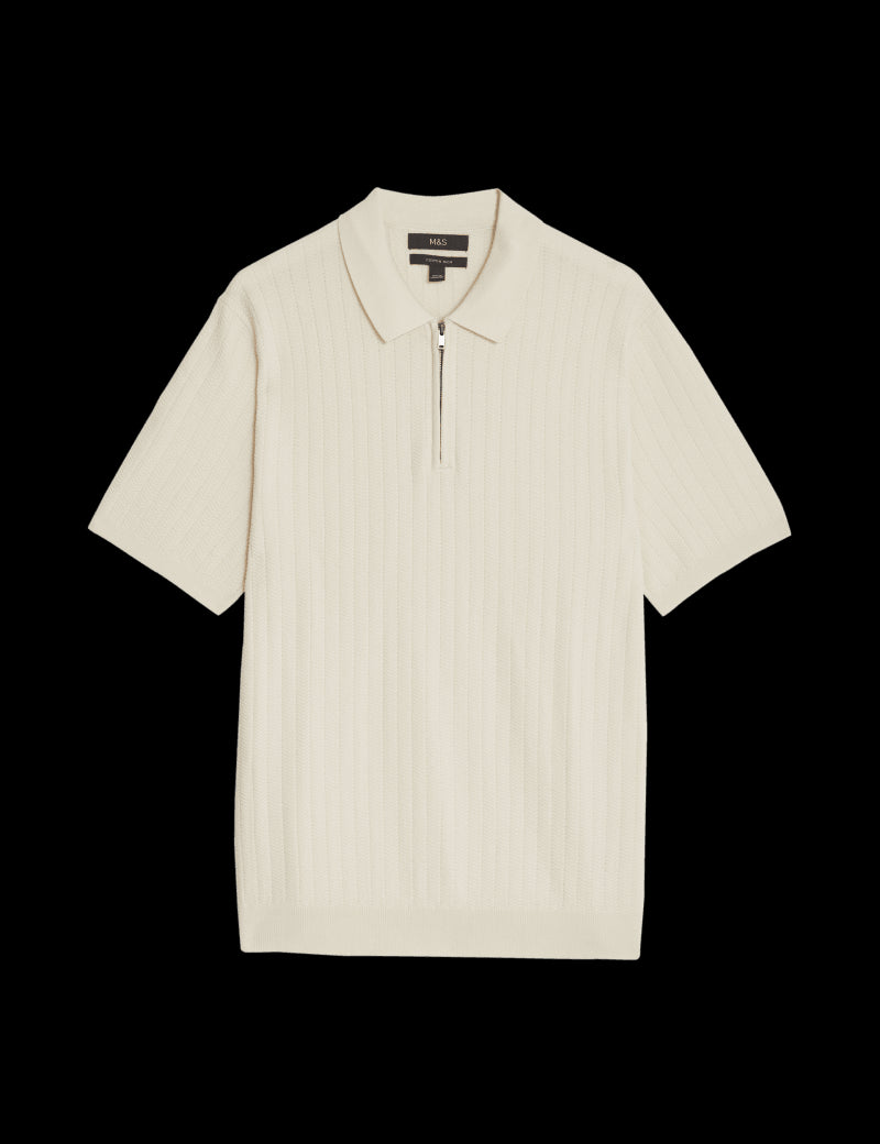 Cotton Rich Textured Knitted Polo Shirt