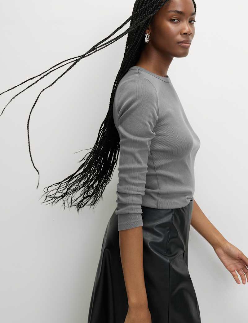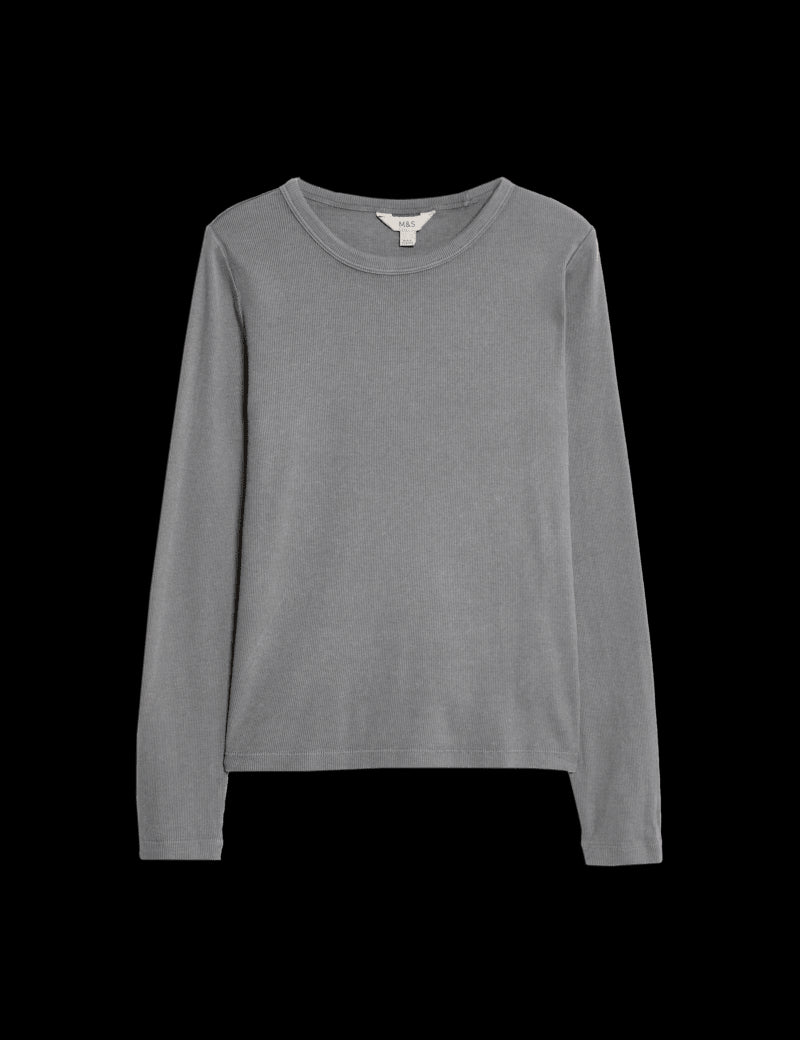 This cotton-rich top is garment-dyed for a lived-in look. Flattering slim fit, with added stretch for comfort. Featuring a ribbed texture, a timeless crew neckline and long sleeves.