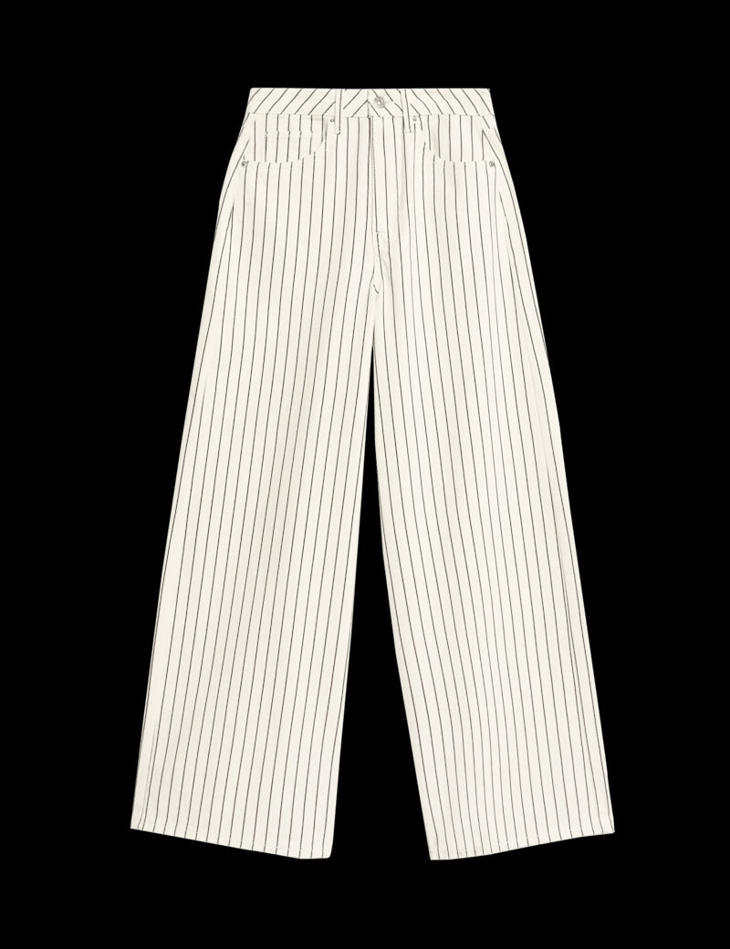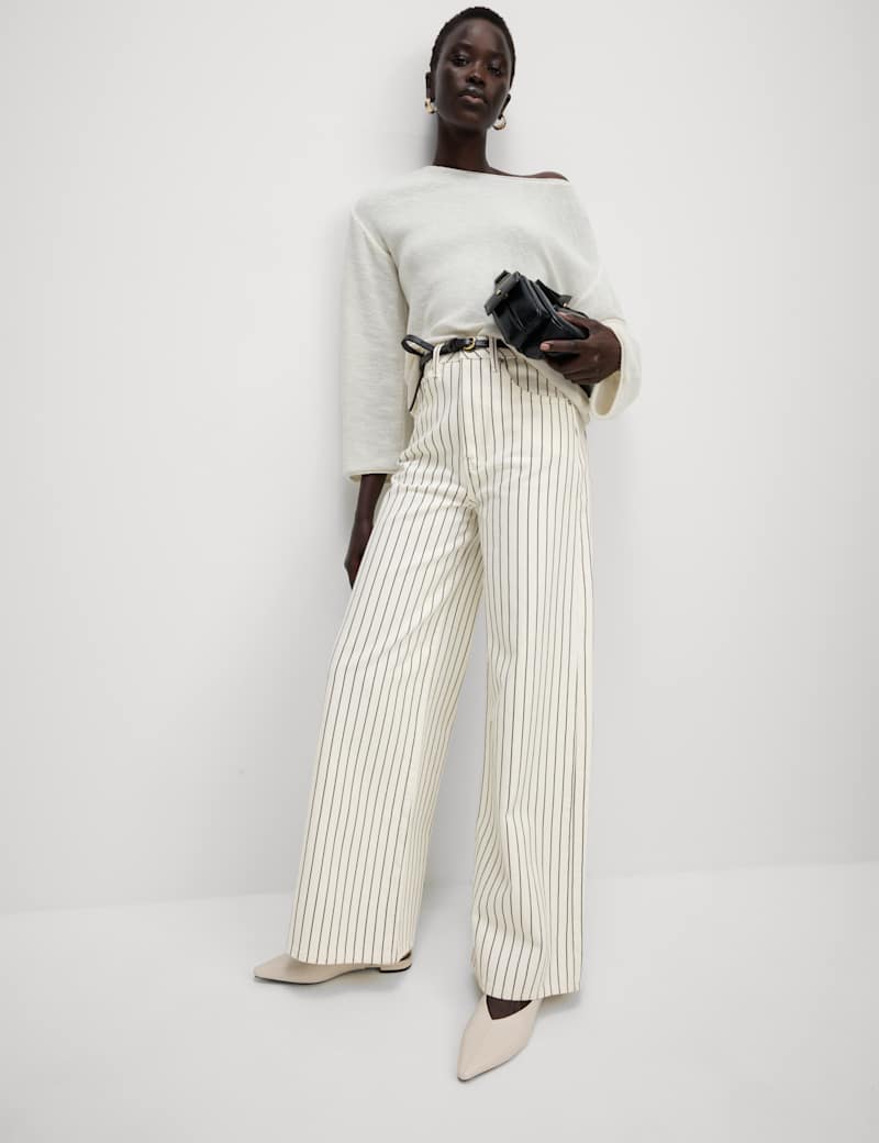 These stylish striped trousers bring a touch of fun to your smart-casual wardrobe. They're designed in a wide-leg fit with a flattering high waist. The look is complete with two side pockets and a button-and-zip fastening.
