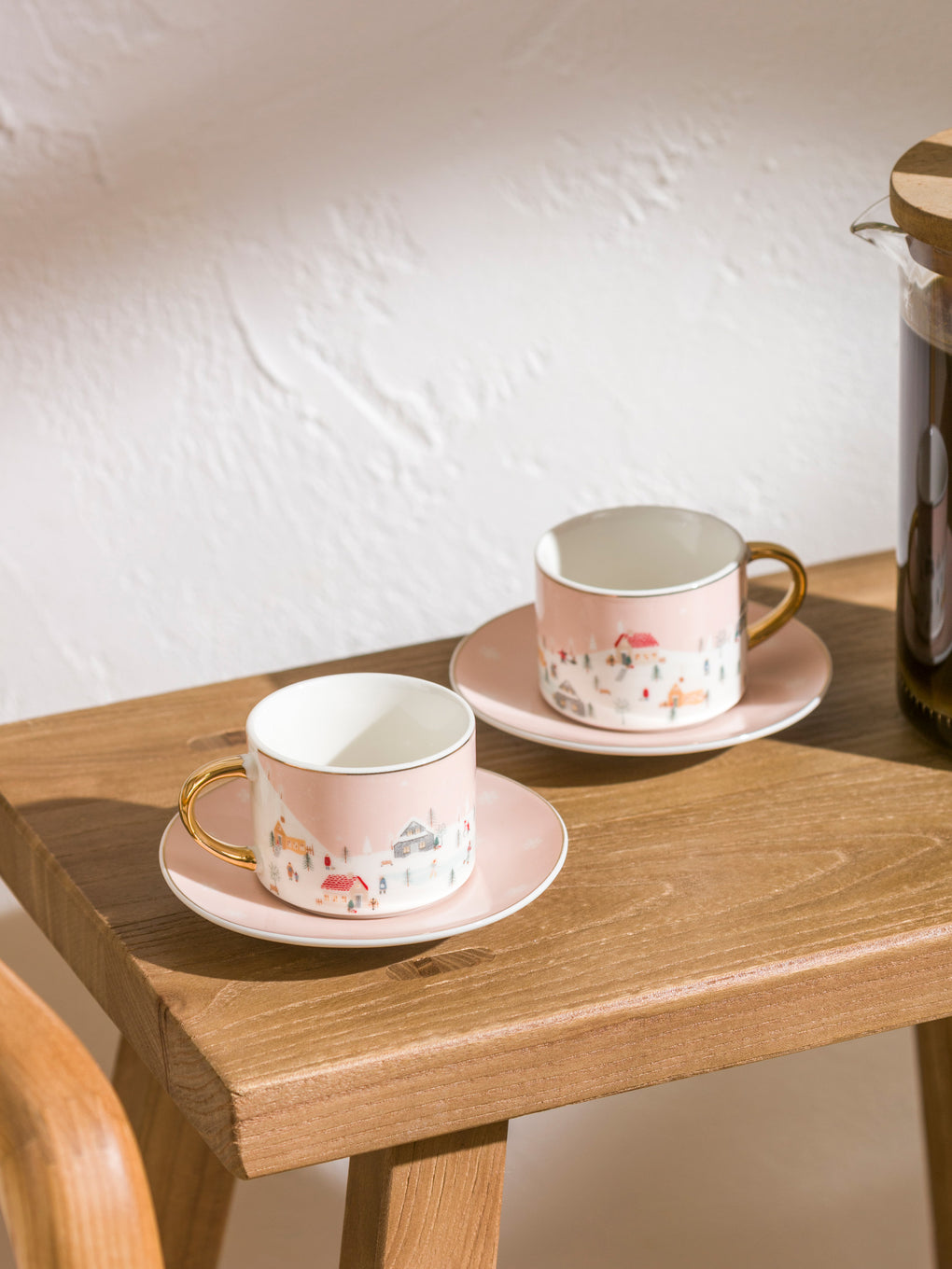 Printed 2-Person Porcelain Coffee Cup Set 90 ml