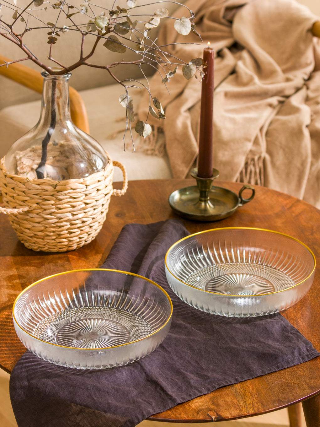 Patterned Glass Bowl Set 2 Pack 21 cm