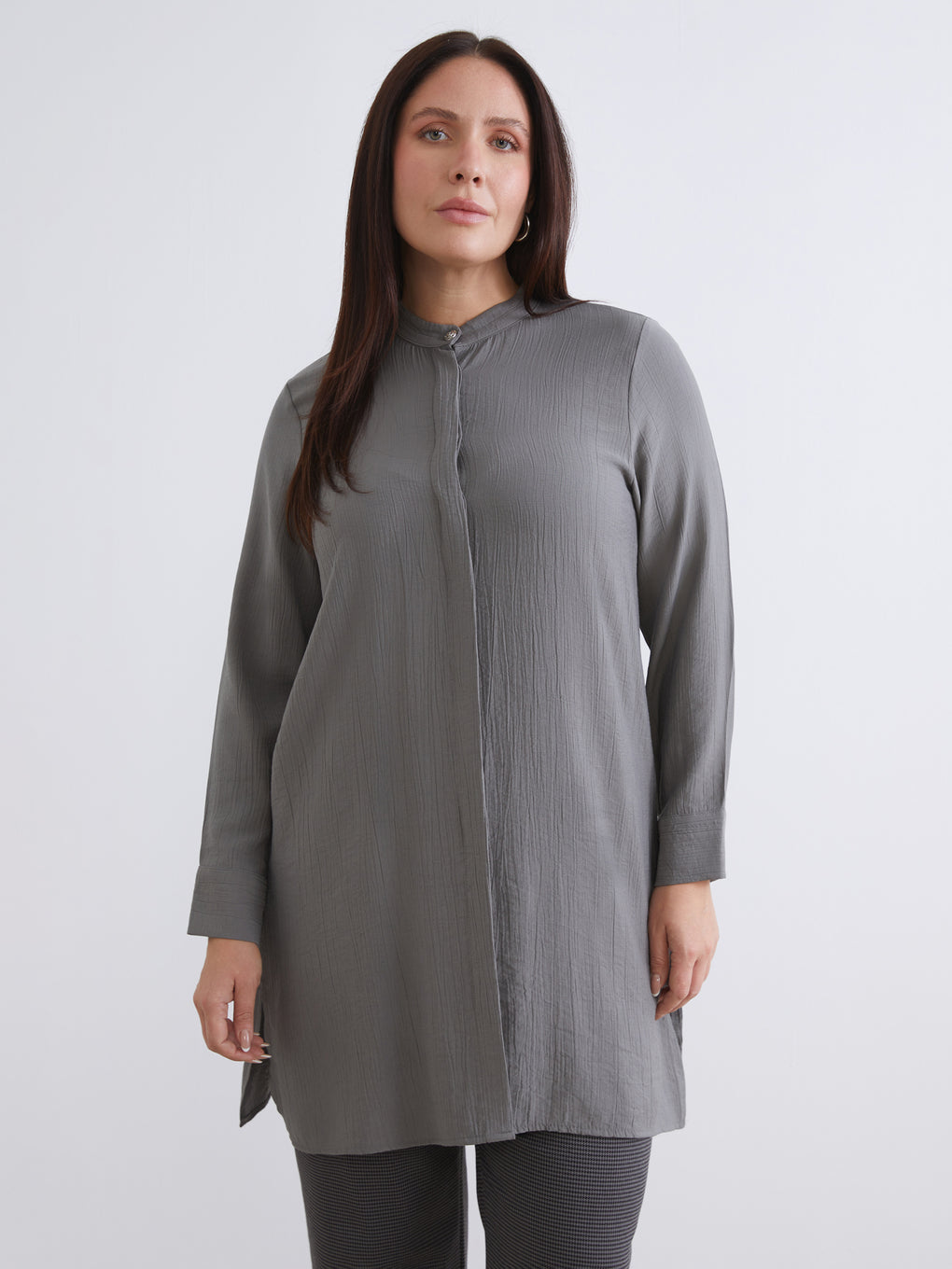 Grandad Collar Textured Women's Shirt Tunic