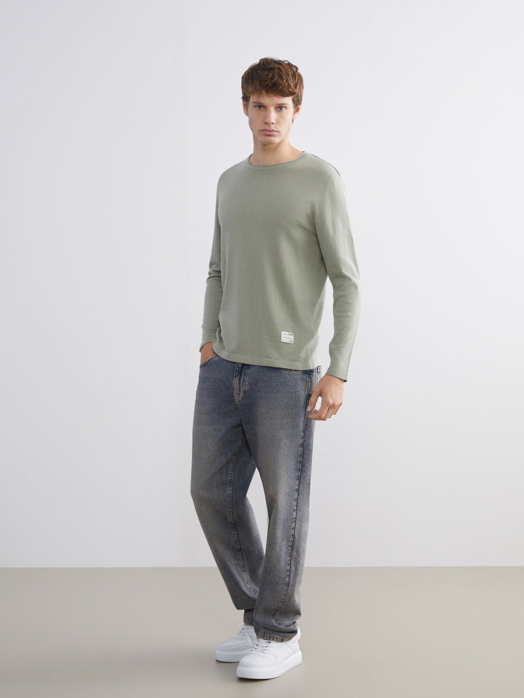 Crew Neck Long Sleeve Men's Tricot Sweater
