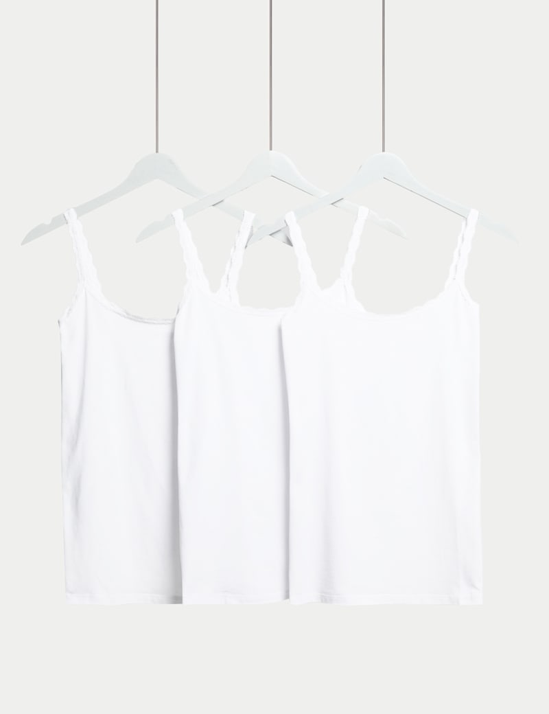Refresh the essentials with this three-pack of cotton-rich vests. Added stretch for a flexible fit. Lace trims lend a feminine touch.