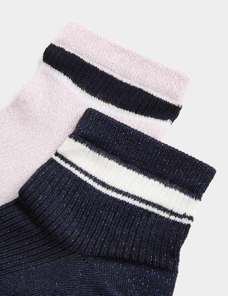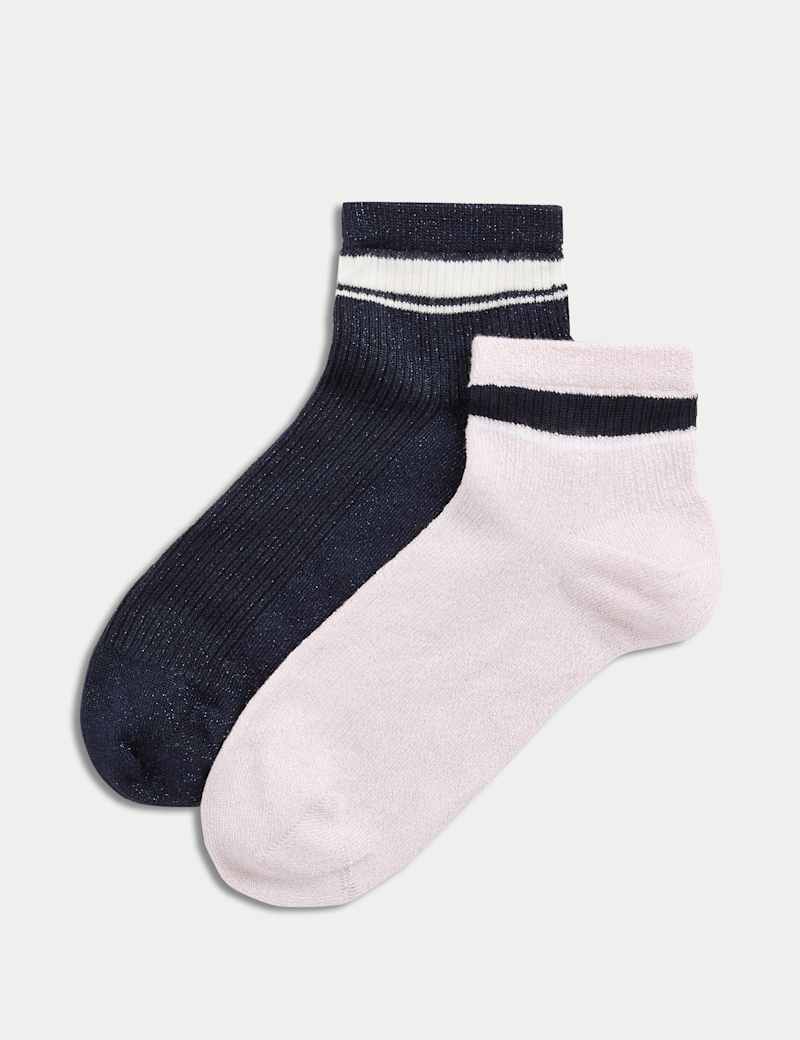 Add some sparkle to your sock drawer with this two-pack of anklets. Made from Sumptuously Soft™ fabric with added stretch for ultimate comfort. Striped detail around the ankle creates a sporty touch.