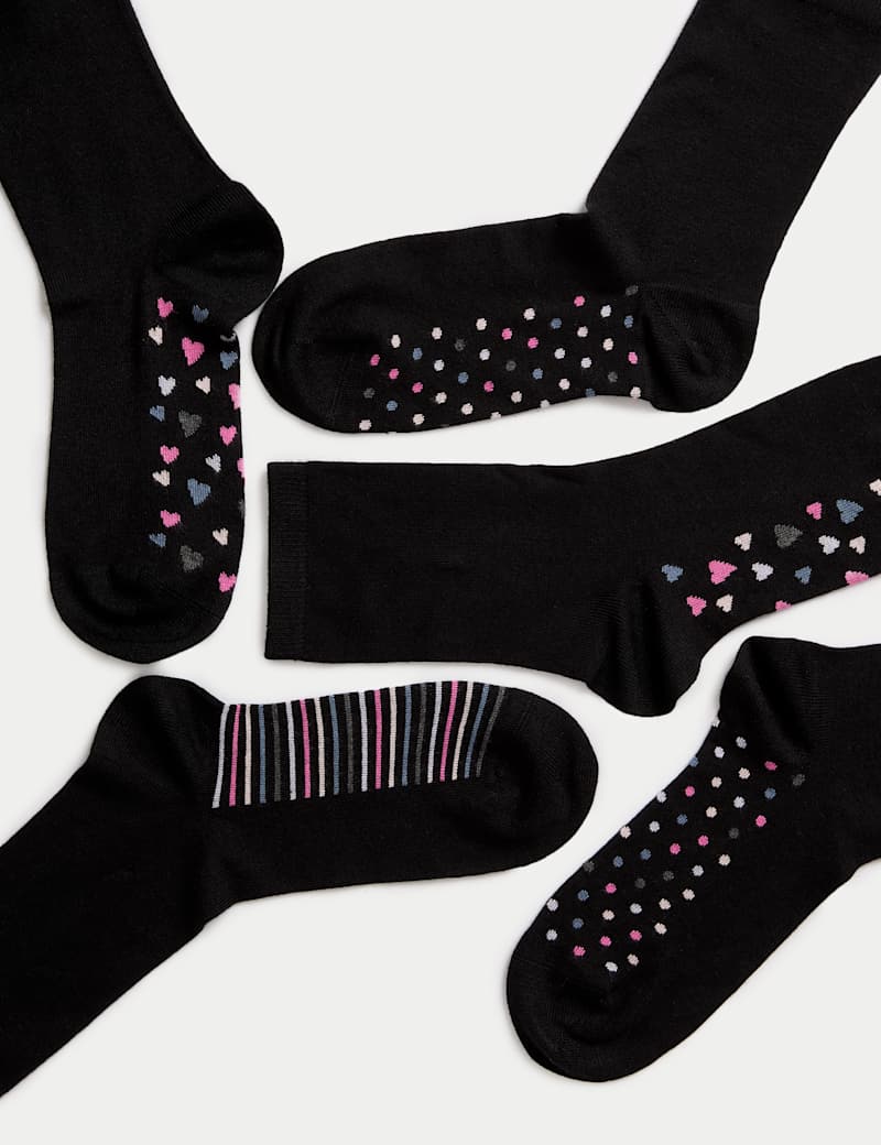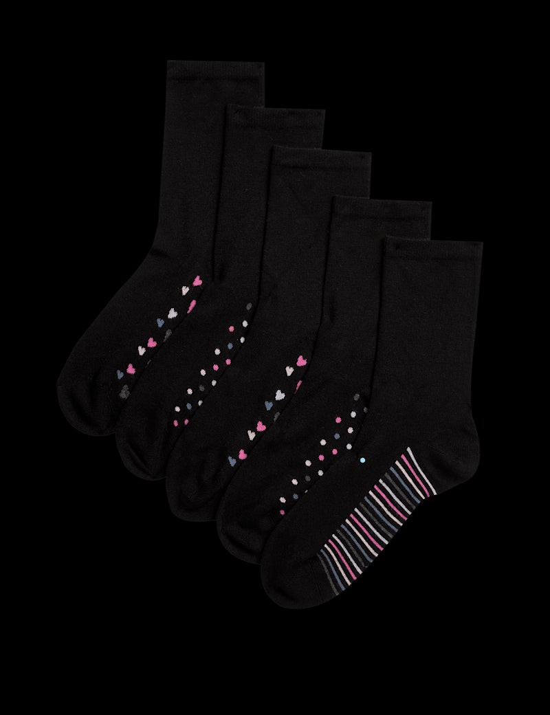Refresh your essentials with this five-pack of ankle-high socks. Each pair is made with added stretch and has a contrast heart, spot or stripe design on the sole.