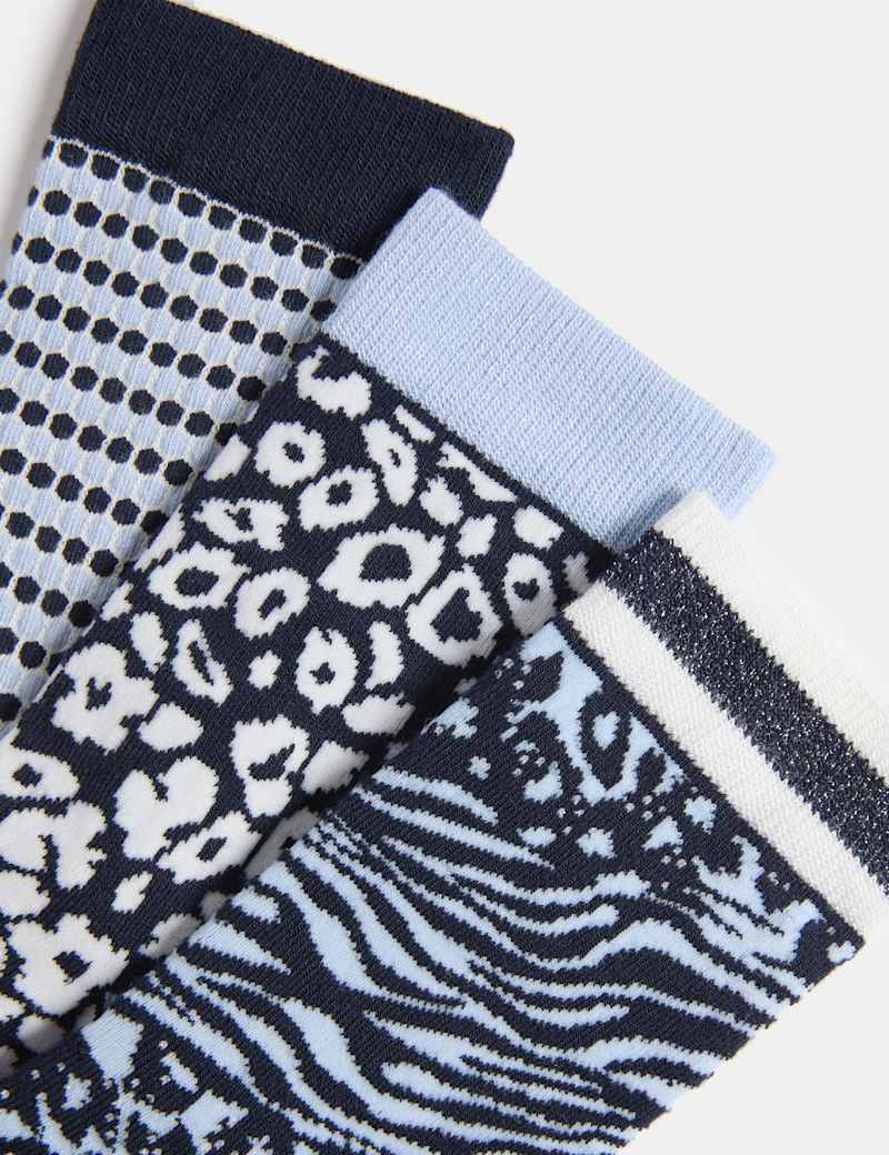 These socks feature a metallic weave to add some sparkle to your essentials. Ankle-high designs, with added stretch for comfort. Pack includes a selection of geometric and animal print designs.