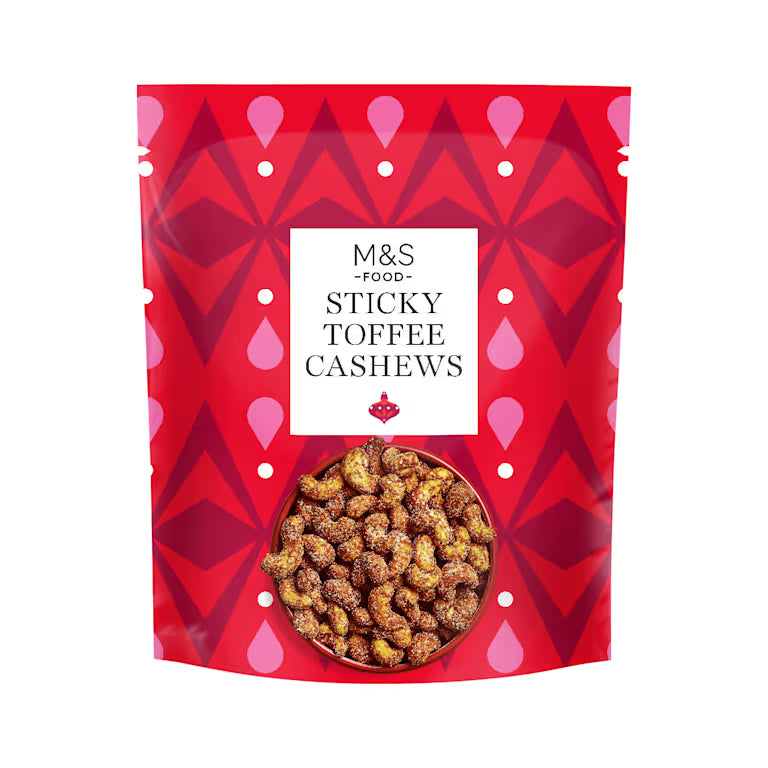 Get stuck into our Sticky Toffee Cashews. The nuts are roasted before being coated in a glaze of dark muscovado sugar and British butter, creating an irresistible, caramelly texture.