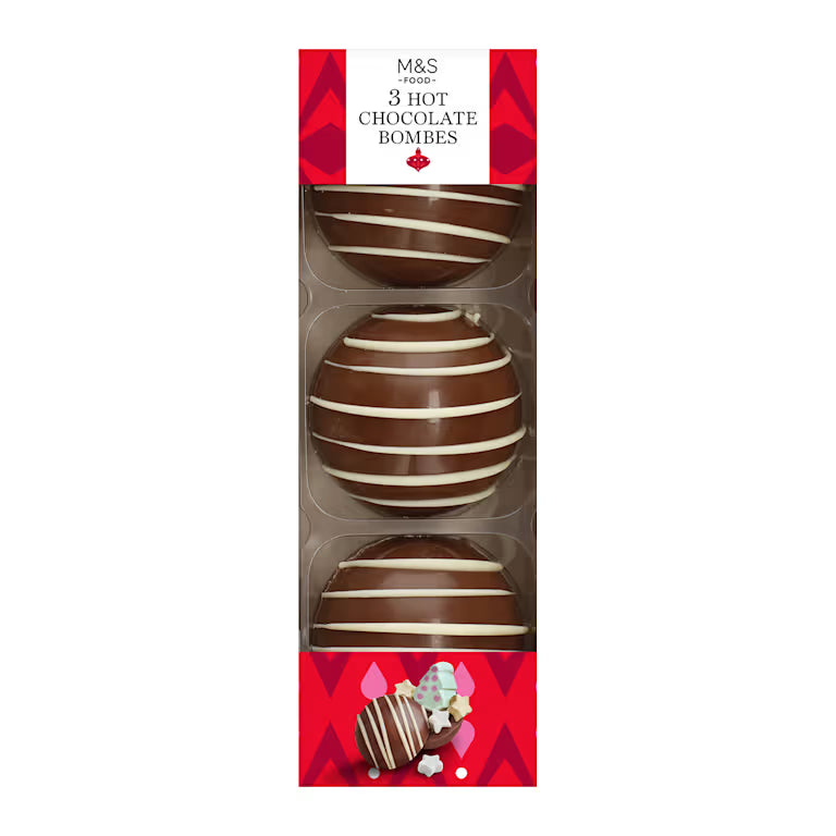 Our Hot Chocolate Bombes feature three milk chocolate bombes, each brimming with fluffy marshmallows. Crafted for a luxurious melt, these bombes dissolve into rich, creamy hot chocolate when submerged in warm milk.