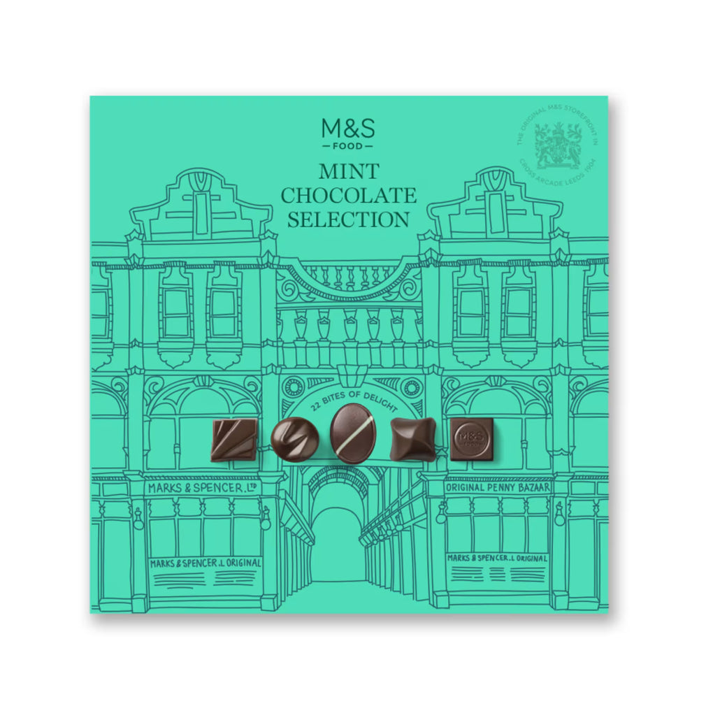 Sugar, Cocoa Mass, Vegetable Oils (Palm, Palm Kernel, Rapeseed) in varying proportions, Cocoa Butter, Humectant: Sorbitol, Glycerol, Invert Sugar Syrup, Glucose Syrup, Ground HAZELNUTS, Butter Oil (MILK), Dried Whole MILK, Fat Reduced Cocoa Powder, Dried Whey (MILK), Dried Skimmed MILK, Chopped HAZELNUTS, Emulsifier: Lecithins (SOYA), Caramelised Sugar, Mint Flavouring, Lactose (MILK), Salt, Flavourings, Spirulina Concentrate, Dark Chocolate contains Cocoa Solids 56% minimum