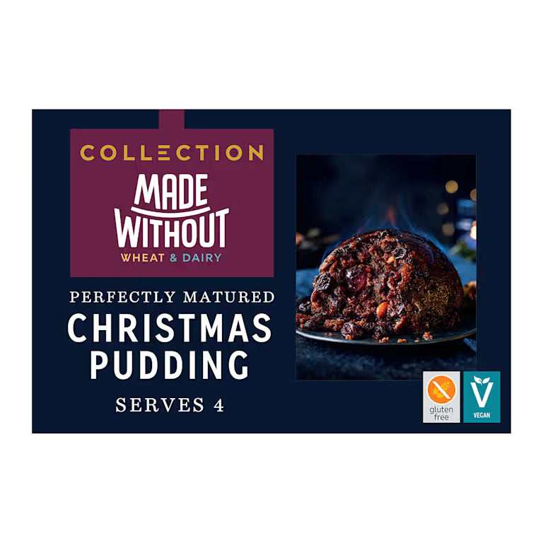 Our perfectly matured Christmas pudding is packed with dried vine fruits, glacé cherries, almonds and juicy Braeburn apple, plus splashes of cider, brandy, Cognac and rum. It's made without wheat or dairy, so no one needs to miss out.