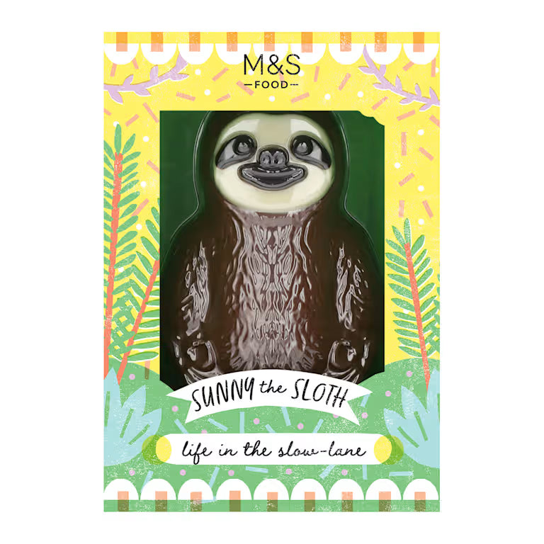 Live life in the slow lane with this adorable milk chocolate hollow sloth, with white and dark chocolate decorations. Just the thing to keep your Easter celebrations chill.