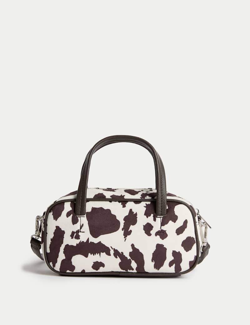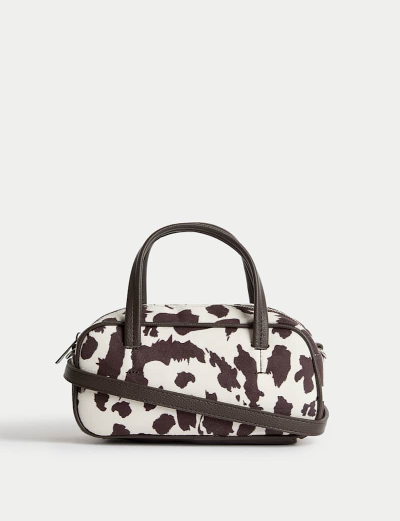Transport your daily essentials in this compact mini bowler bag. It features a suedette finish for a luxuriously textured look. Two top handles and a detachable cross-body strap allow for multiple carry options. The lined interior has a zipped compartment for your valuables.