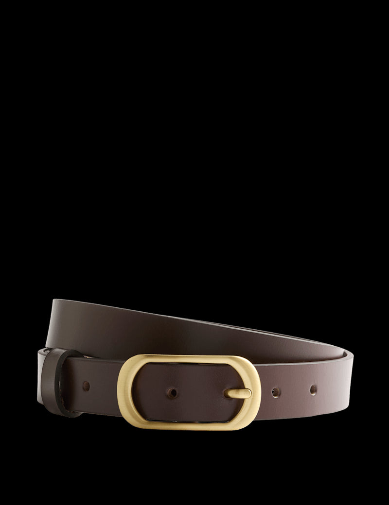 This leather belt is ideal for adding a touch of sophistication to your jeans. It's designed with an oval metal buckle in a brushed finish for a timeless look.