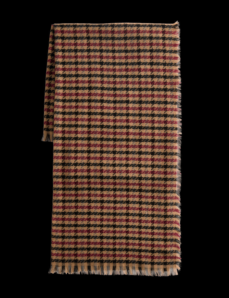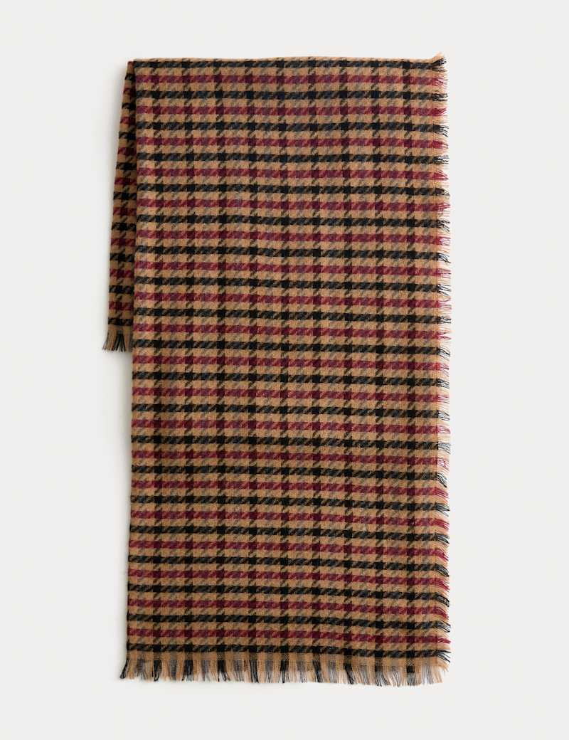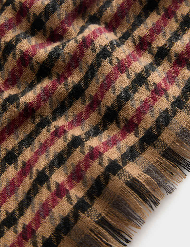 This woven scarf features an all-over checked pattern for a timeless look. The warming accessory is neatly finished with fringed edges for a touch of texture.