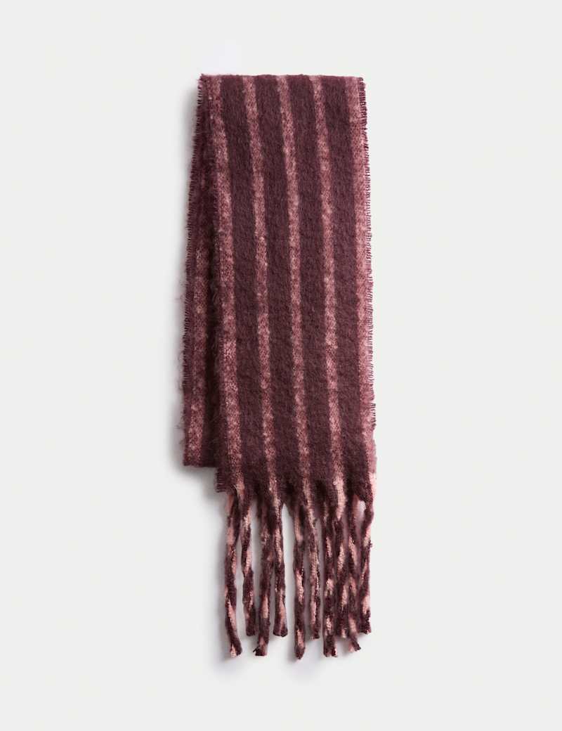 This brushed scarf is a stylish way to keep cosy on chilly days. It's decorated with skinny stripes and finished with tasselled edges for a timeless look. M&S Collection: easy-to-wear wardrobe staples that combine classic and contemporary styles.