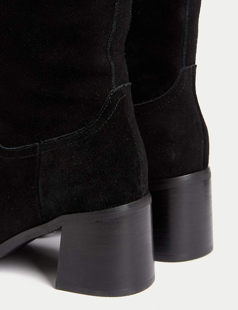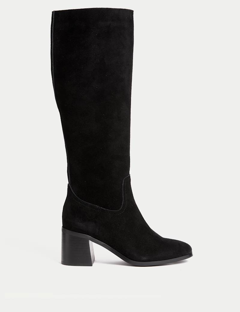 These luxurious suede knee-high boots are a timeless addition to your footwear options. The design features a comfortable mid-height block heel. A zip fastening on the side makes them easy to put on and take off.