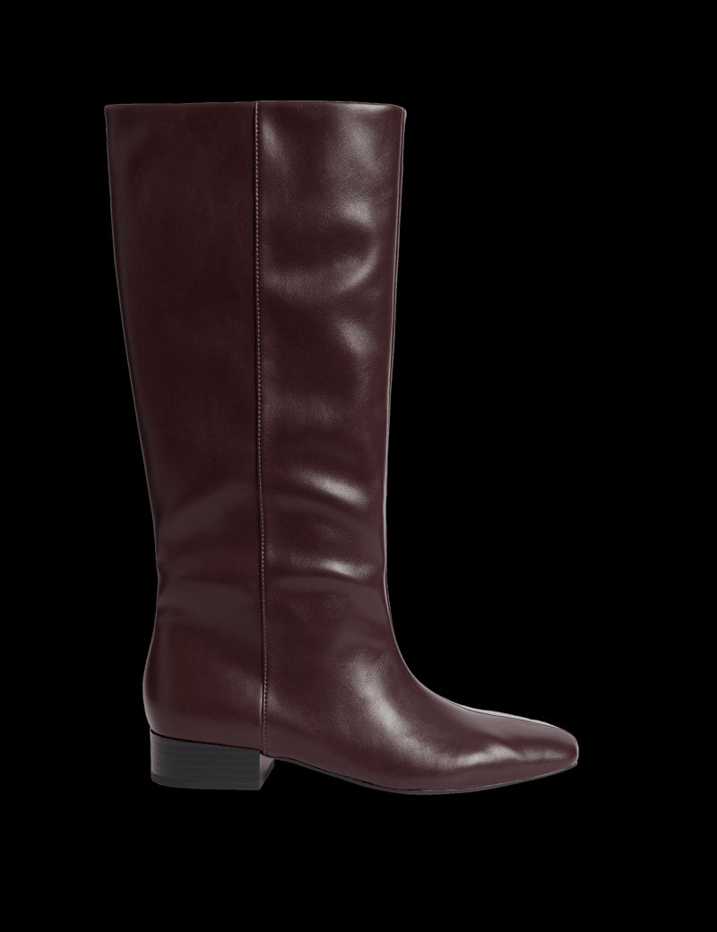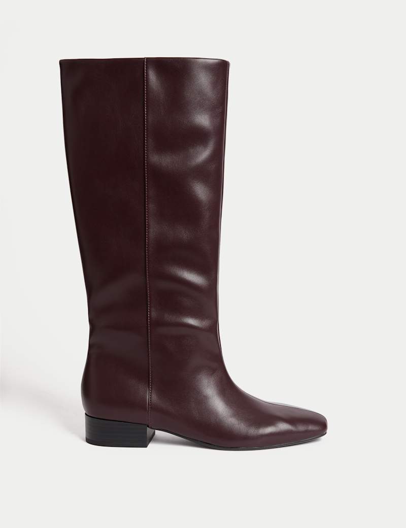 These knee-high boots are a comfortable choice for daily wear. They have a low block heel and a chiseled toe for a contemporary look. A zip fastening makes for easy wear.