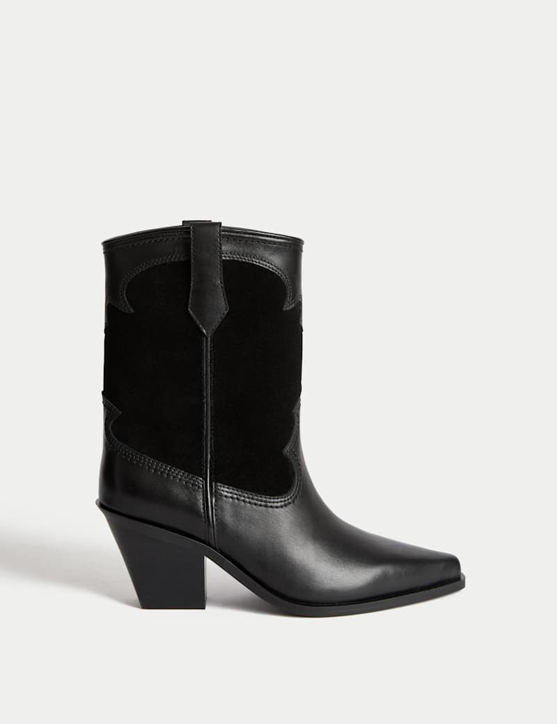 These waxed leather ankle boots will bring a Western-inspired touch to your outfits. They're designed with a high block heel and pointed toe, as well as traditional cowboy-style panelling. Pull tabs at the sides make them easy to slip on. Antibacterial padding keeps feet feeling fresh and odour-free.