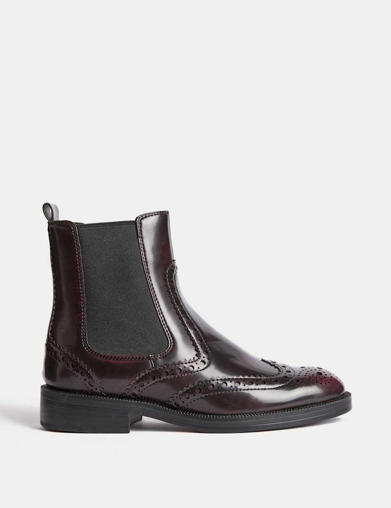 Two classic designs combine in these brogue-style Chelsea boots. The pair has features intricate detailing, a low block heel and a round-toe design. The traditional elasticated side panels and pull tab make them easy to slip on and off. Our anti-bacterial Freshfeettechnology keeps your feet feeling fresh.