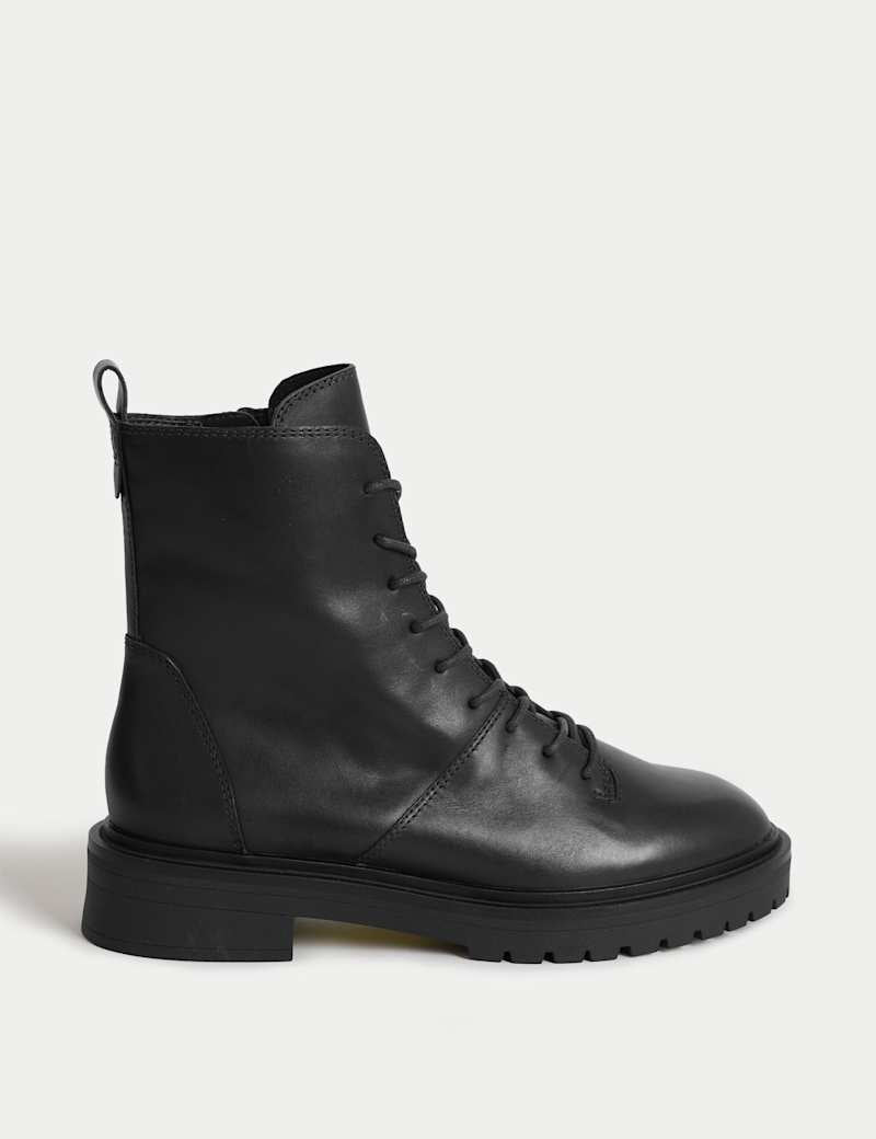 These leather ankle boots are easy to style with seasonal staples and dressier pieces alike. They have a low block heel and a lace-up fastening for a timeless look. The cleated sole provides plenty of grip, while antibacterial padding inside minimises odours to keep your feet fresh.