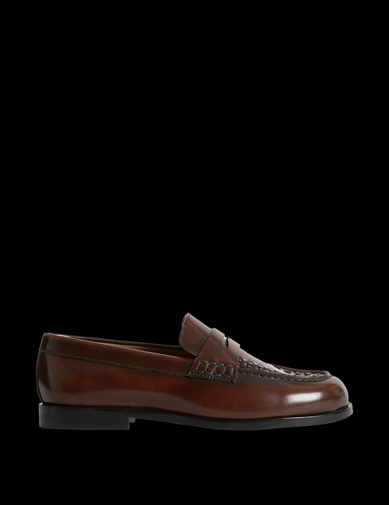 These polished leather loafers are a timeless addition to your shoe collection. Flat heel and slip-on design for all-day comfort. Neat stitching and woven detailing on the front add extra texture.