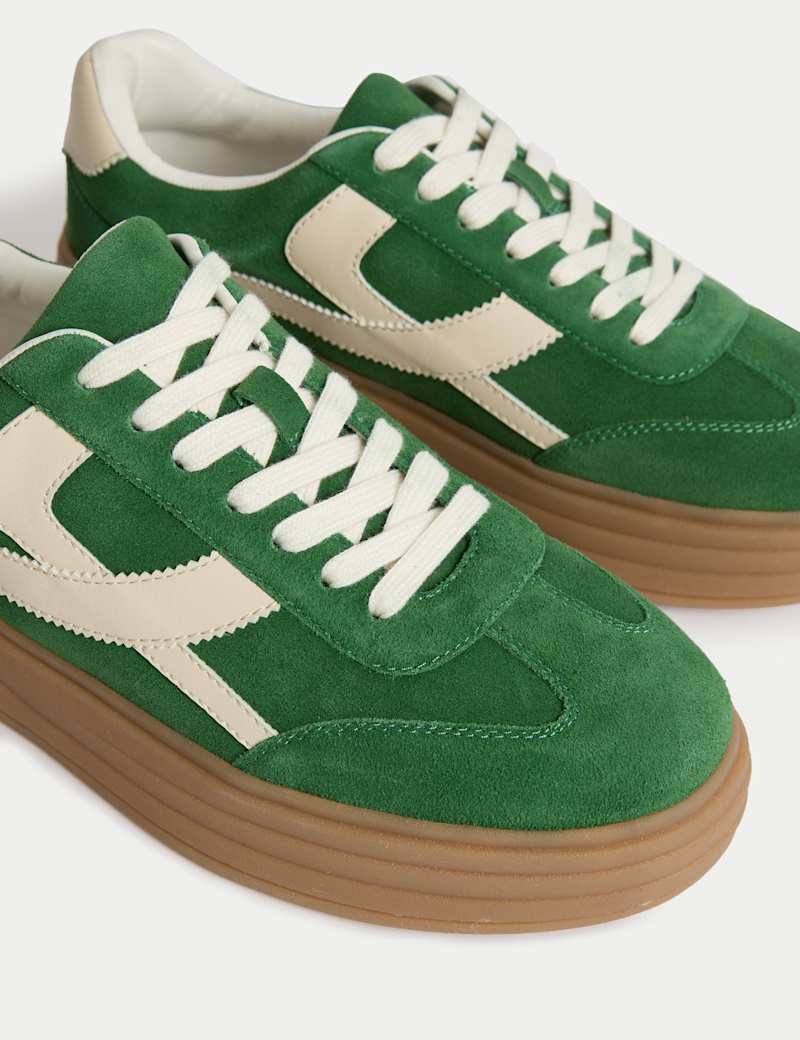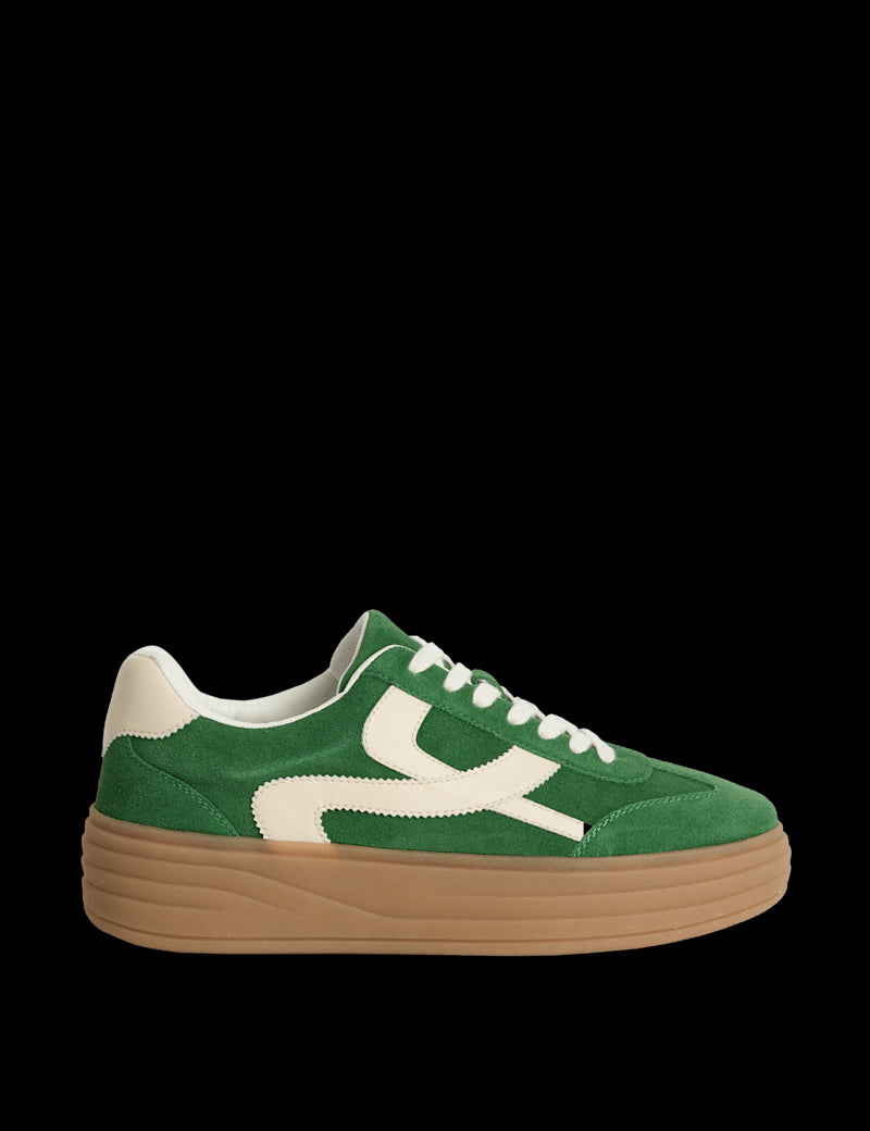 Amp up your casual style with these sporty trainers featuring a T-toe and a flat platform sole. With a contrast panel at the heel, plus stripes on each side, these classic lace-ups exude athletic appeal. Cushioning at the inner heel keeps you comfy on your feet all day.