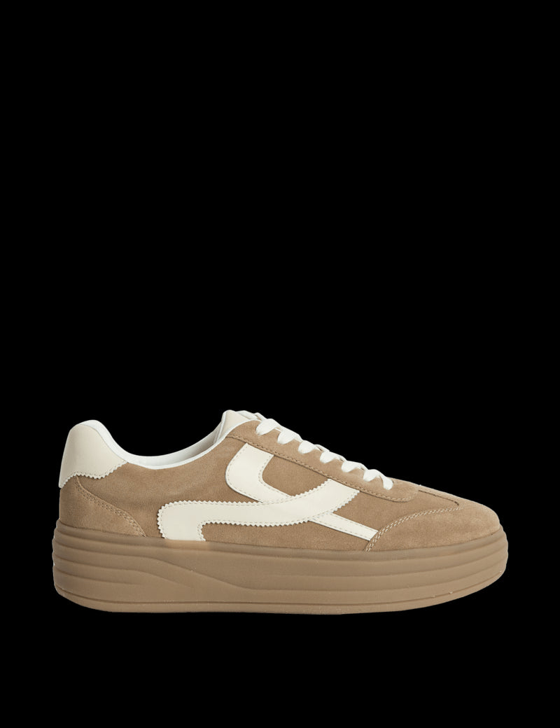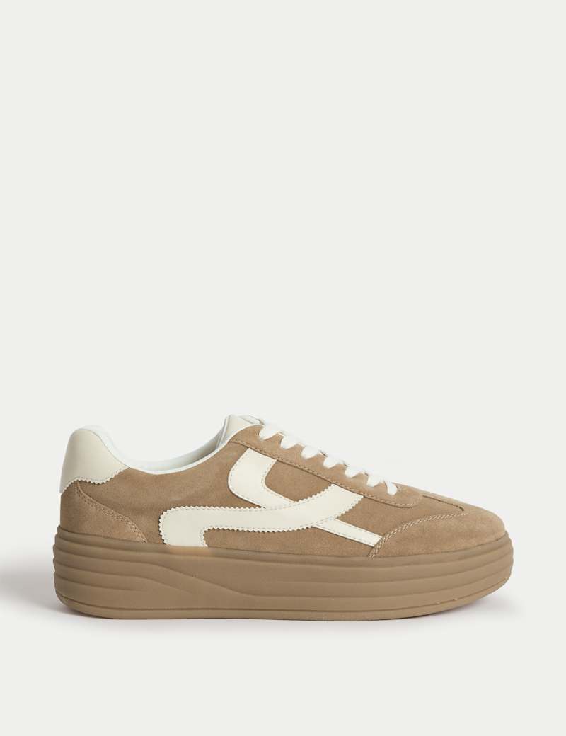 Amp up your casual style with these sporty trainers featuring a T-toe and a flat platform sole. With a contrast panel at the heel, plus stripes on each side, these classic lace-ups exude athletic appeal. Cushioning at the inner heel keeps you comfy on your feet all day.