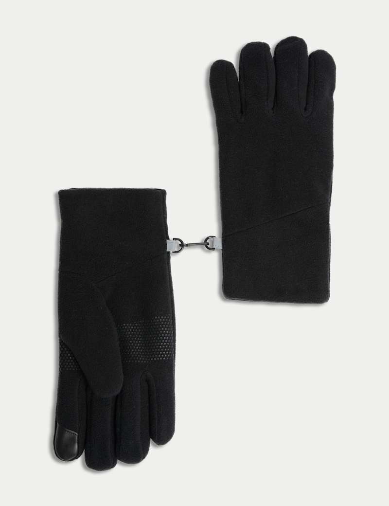 Maximum warmth meets modern convenience in these fleece gloves from M&S Collection. Created with touchscreen compatibility, they allow effortless phone and smartphone use with sensitive fingertips while keeping hands protected from cold winter weather. A thoughtful connector loop-and-bar system ensures the pair stays together when not in use, while the textured fleece provides great insulation with a soft feel.