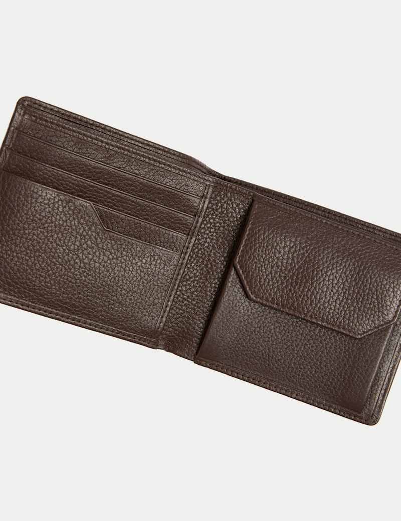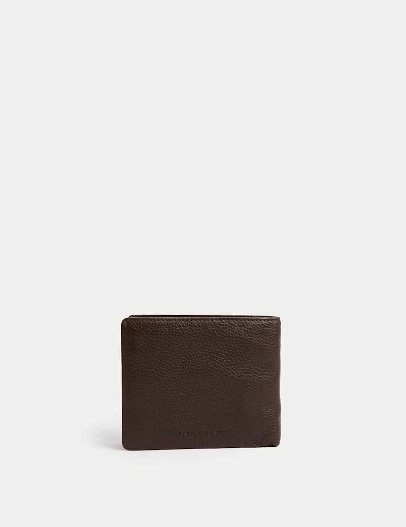 This leather wallet from our Autograph collection combines functionality with clean design. The bifold silhouette opens to reveal four card slots, a spacious note pocket and secure coin pouch. Made from genuine leather with a textured grained finish. The practical organisation makes this an ideal accessory for everyday use.