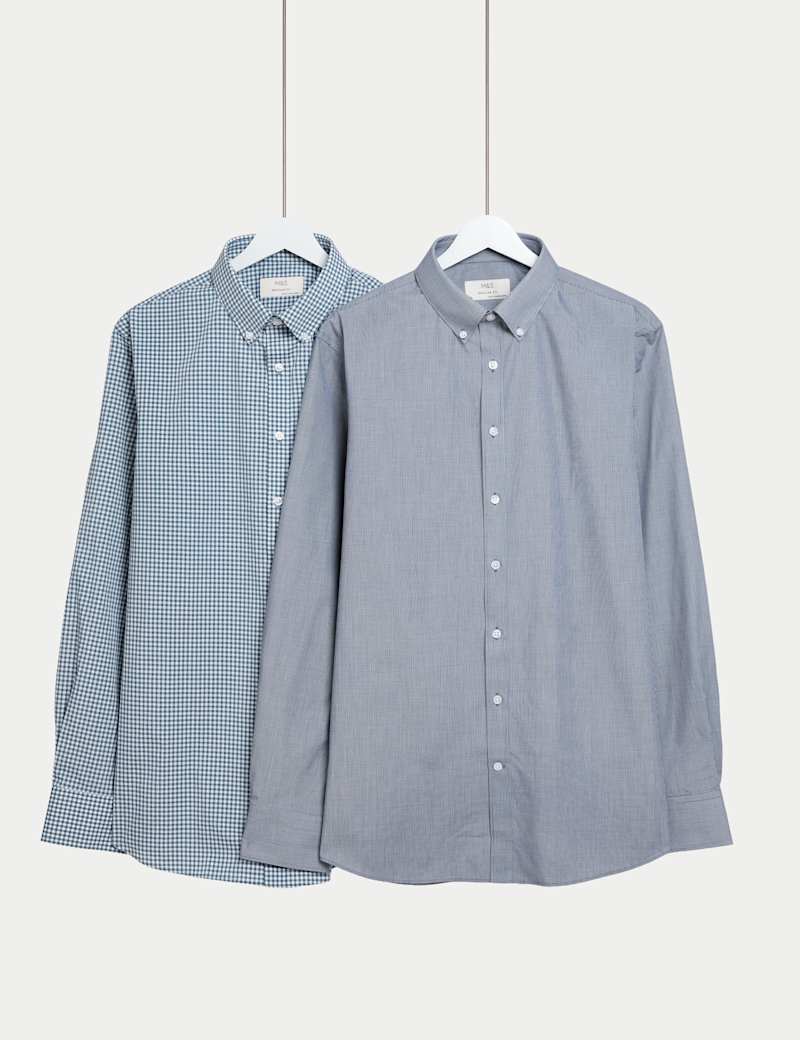 These two checked shirts are made from a carefully selected fabric for everyday comfort. The regular fit offers a classic silhouette with clean lines, while button-down collars add structure to the design. Long sleeves with single cuffs create a smart finish, perfect for professional settings. An easy-care and easy-iron finish ensures these shirts maintain their smart appearance with minimal effort. 0