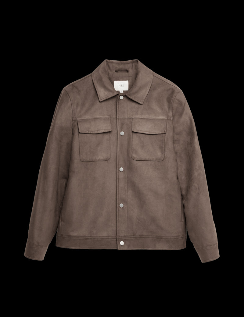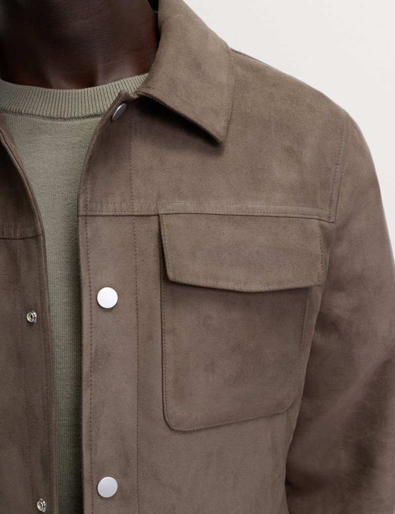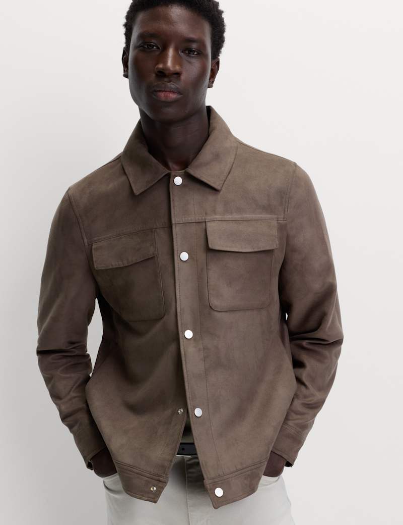 This sharp-looking collared trucker jacket is made from faux suede for a luxuriously smooth feel. The body has soft lining for added comfort and a measure of extra warmth. There are two breast flap pockets for stowing your essentials just where you need them. This must-have piece fastens securely with buttons.