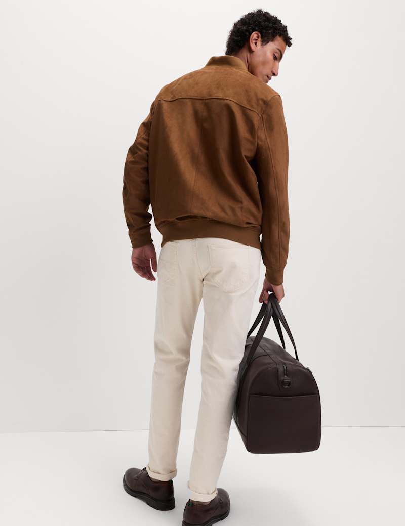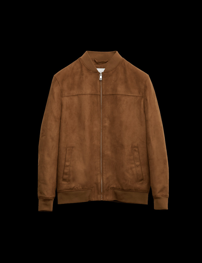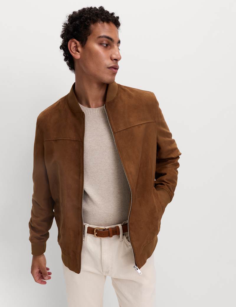 Natty, noticeable and notable for its clean lines and sharp tailoring, this faux-suede bomber jacket is something you'll want for your next wardrobe upgrade. It's cut to a regular fit to make layering easy. and is lined for extra comfort. The polished metal zip fastening leads to its classic baseball collar. The twin pockets keep your hands warm and your essentials safely stored away.
