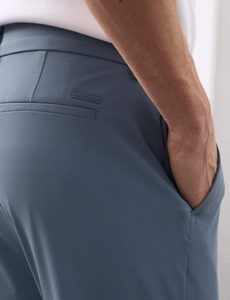 Sleek and streamlined, these slim fit chinos are made from technical stretch fabric that maintains its shape wear after wear. The moisture-wicking finish keeps you comfortably dry throughout the day, while the four-pocket design offers practical storage for your belongings. Featuring a secure button and zip fastening with belt loops for a tailored appearance.