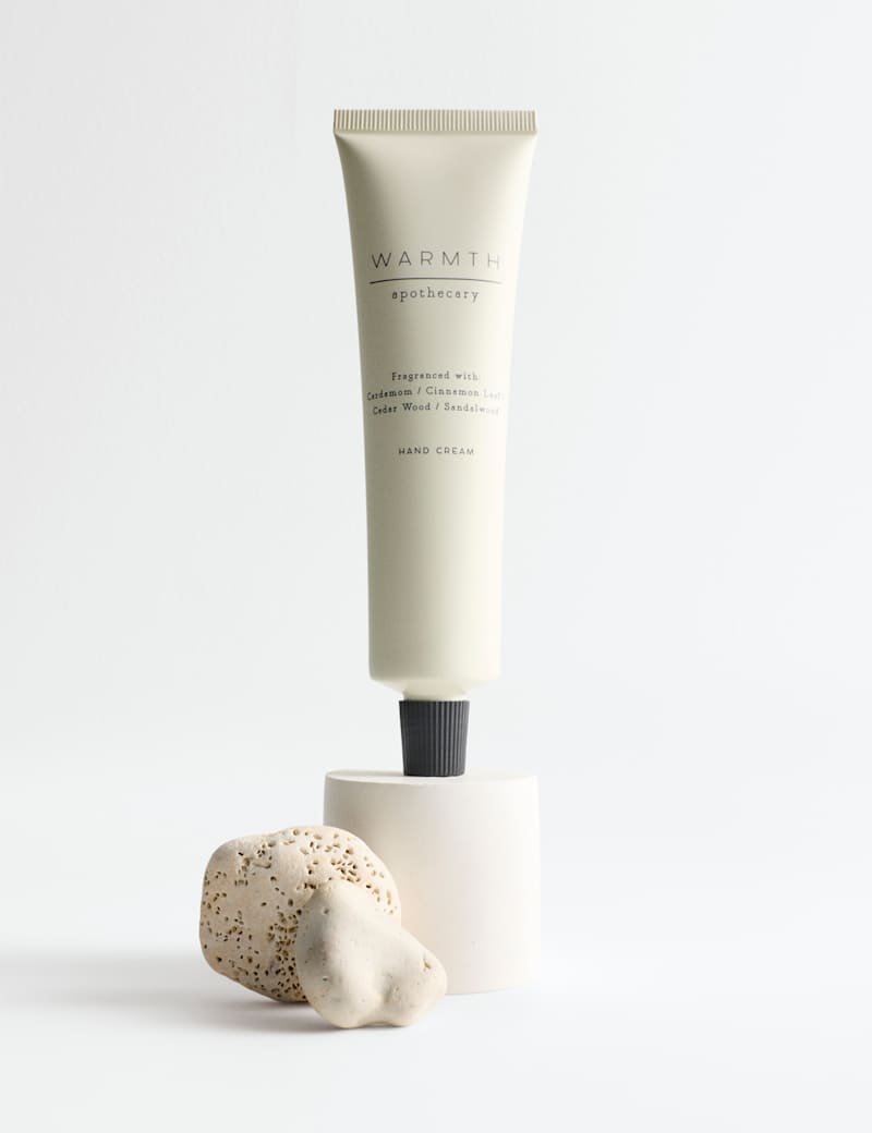 Envelop hands in moisturising comfort with this Warmth hand cream from our Apothecary collection. Infused with essential oils of cardamom, cinnamon leaf, cedarwood and sandalwood, it leaves skin feeling soft and hydrated while surrounding the senses with a soothing, grounding aroma.